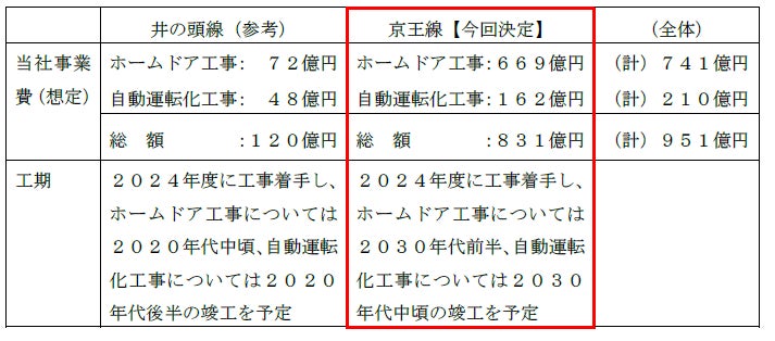 (※)井の頭線におけるホームドア工事および自動運転化工事の実施については、2024年2月5日開催の取締役会において決定しております。