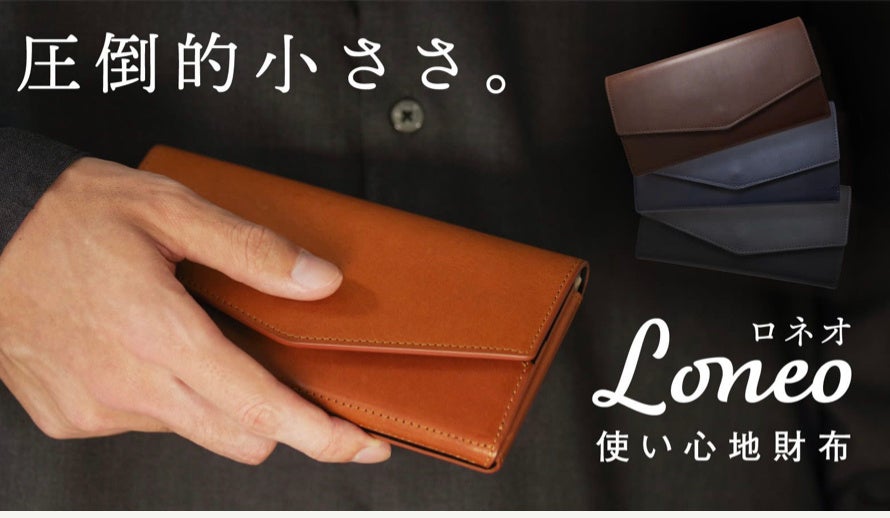一万円札とほぼ同じ、圧倒的な小ささの長財布(165×85×20mm)。コンパクトなので小さなパンツのポケットにすっぽり収まります。サイズは小さくても大きく開いて中が一目で分かるので使い勝手も抜群です。企画から製造まで一貫して行っている日本製です。