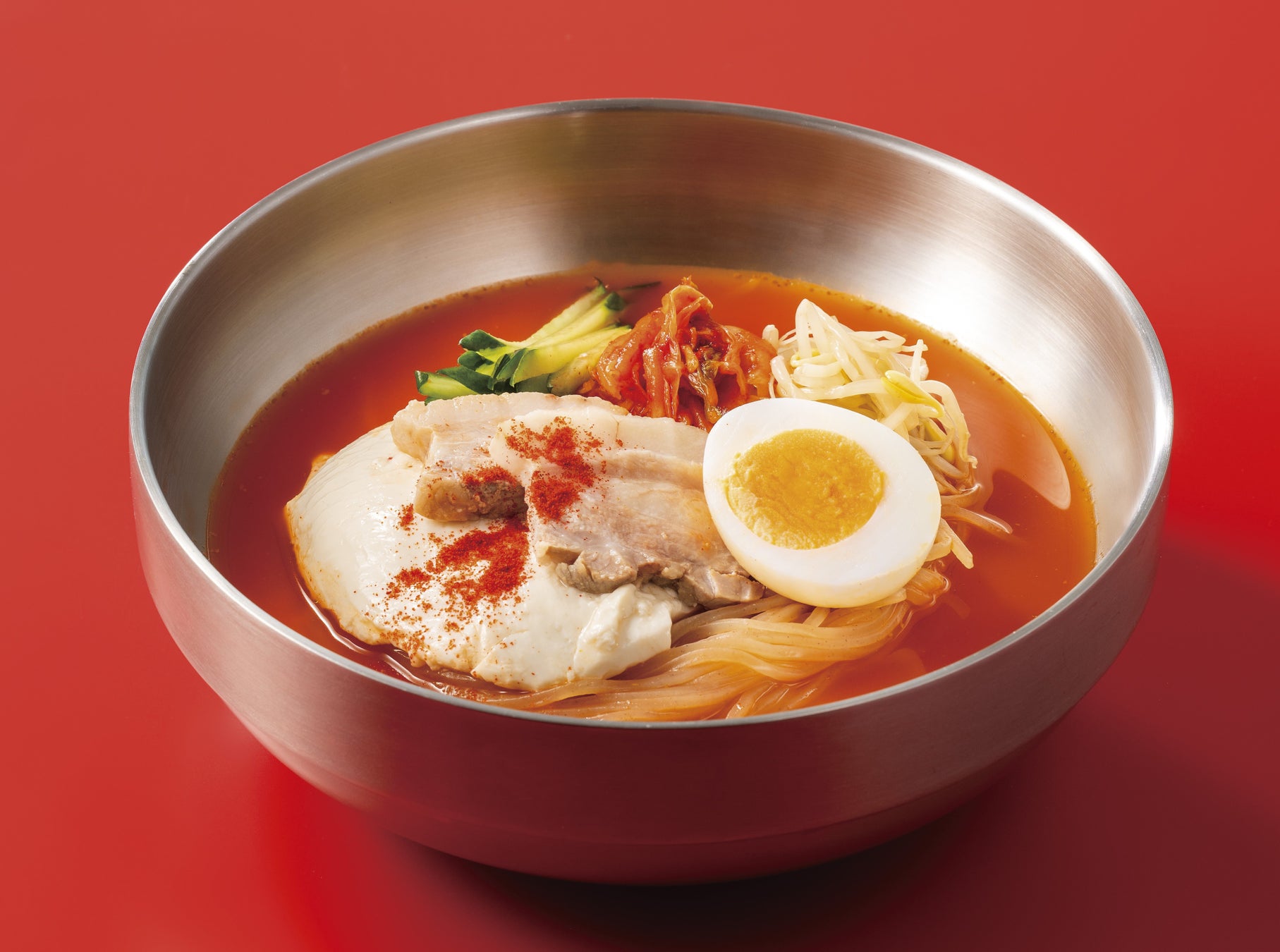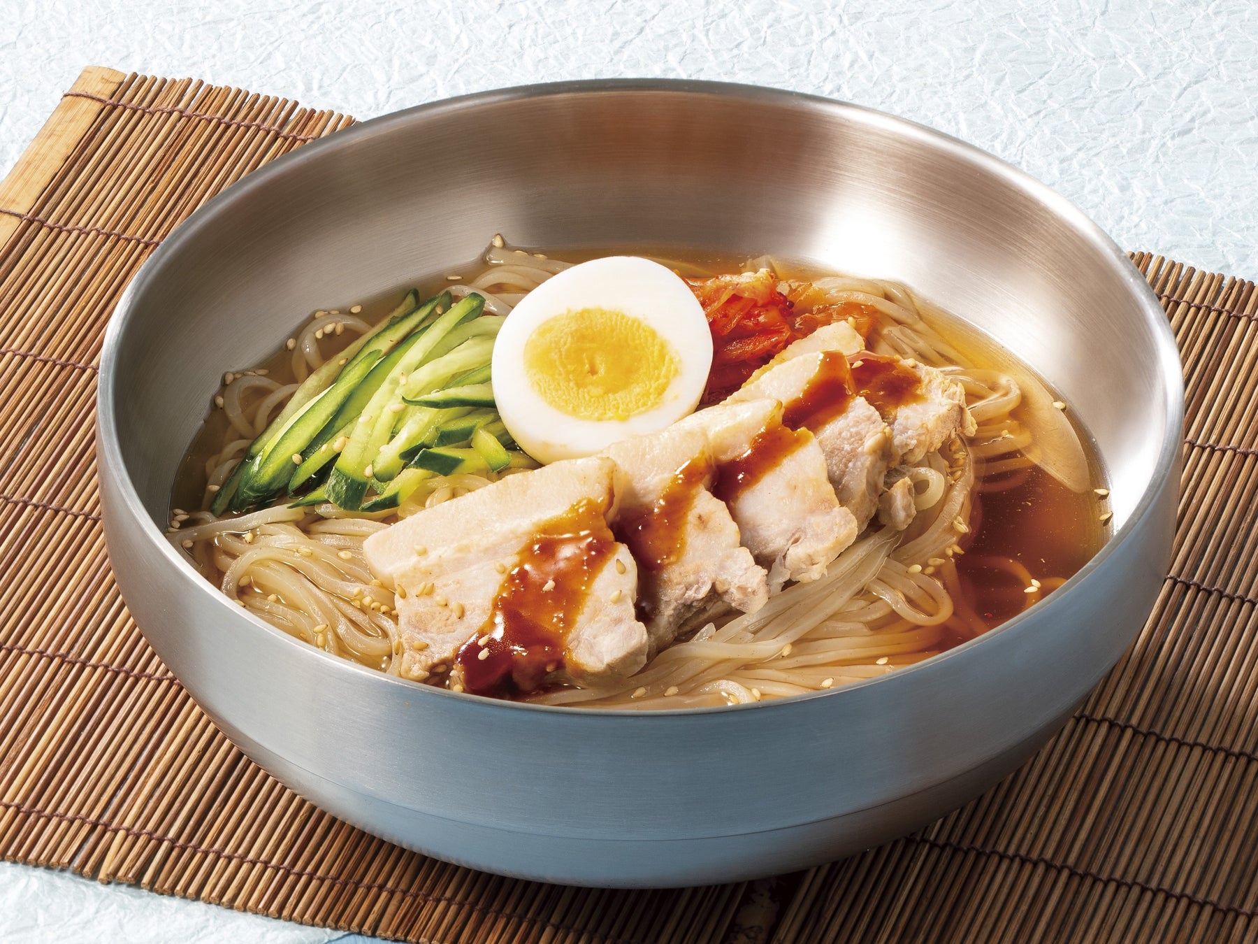 今年4月から販売を開始し、さっぱりとしながらも食べ応えがあるとご好評いただいている「ポッサム冷麺」に加え、気温が上がりさっぱりとしたメニューが恋しくなるこれからの季節に、その日の気分や好みに合わせて全3種類からお選びいただけるようになりました。