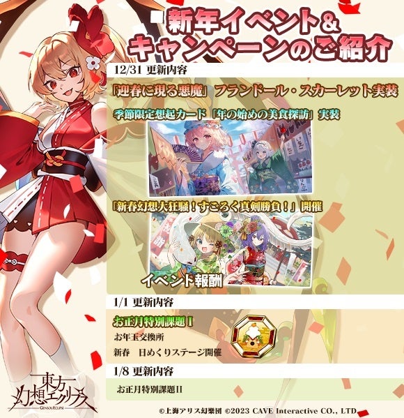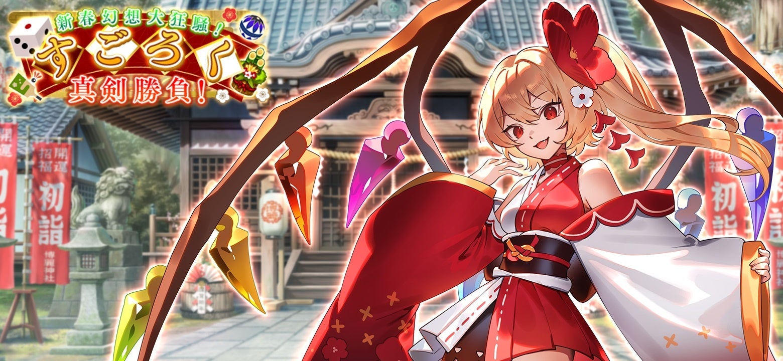 12月31日(火)より新キャラクター[迎春に現る悪魔]フランドール・スカーレットが登場、加えてイベント『新春幻想大狂騒!すごろく真剣勝負!』を開催いたしました。