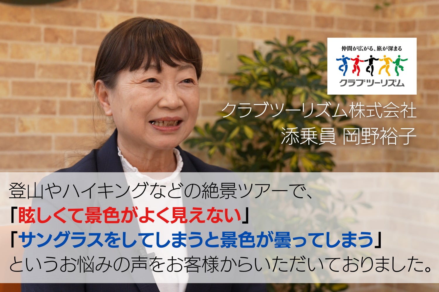 「眩しさにより日常生活の色彩を感じにくい方のために開発された特殊レンズが、絶景をサポートする旅行用サングラスとして最適かもしれない」と、東海光学とクラブツーリズムが新サングラスの開発に着手し、旅行用に適するための条件をひとつずつ具現化し、試作を重ね完成いたしました。