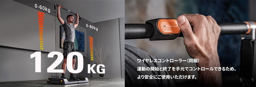 コンパクトな本体にモーターが内蔵されており、独自のアルゴリズムにより負荷がかかることによって、①スミスマシン、②ウエイトベンチ、③ローイングマシン、④ケーブルクロスオーバーマシン、⑤ダンベル/バーベルの5つのトレーニングマシンの機能を再現することができます。