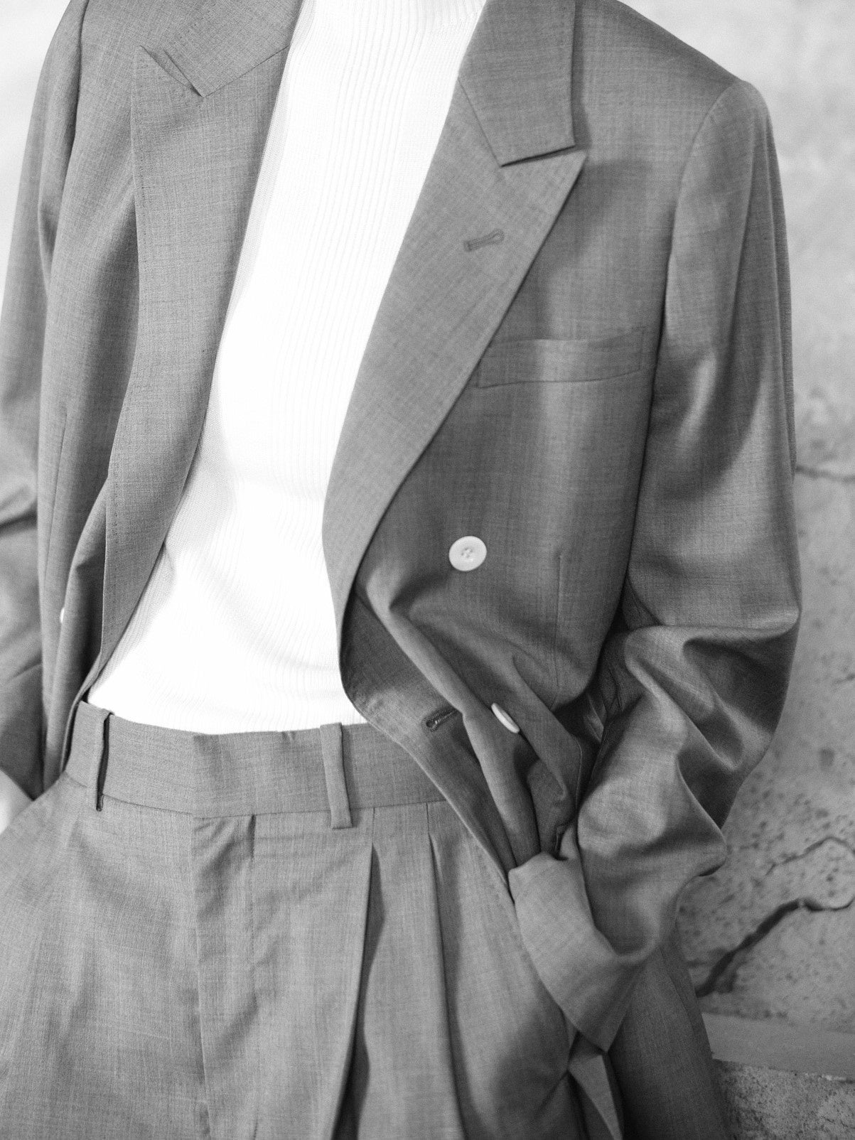 ジャケットを手掛けたのは、海外メゾンからも引く手数多なテーラード工場で日本五指に入ると言われている青森県南津軽郡の工場。日本のテーラード技術の素晴らしさを世界に伝え、縫製業界の現場をより良いものへ変えて未来に残していきたい、そんな工場の想いにも共感し念願の制作に至りました。カシミヤ織のウールジャケットやシルク混の梳毛ジャケットなど、様々な生地を使用した豊富なラインナップでご用意いたしました。