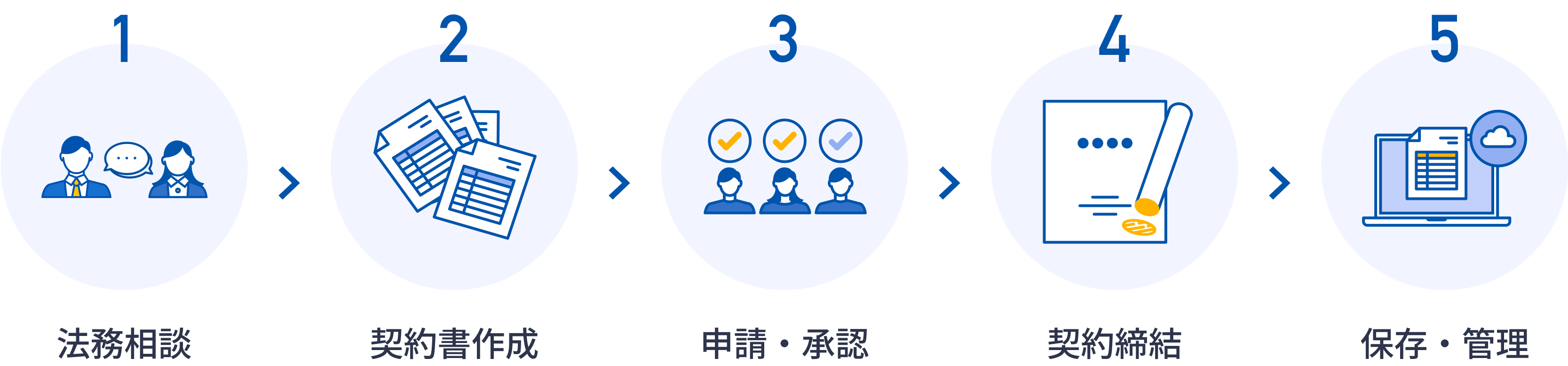 『マネーフォワード クラウド契約』は、契約書についての法務相談から作成、申請・承認、契約締結、保存、管理までクラウド上で完結できる電子契約・契約書管理サービスです。紙の契約書を発行する際に必要な印刷・製本・押印・郵送などの手間や時間、コストを削減できるだけでなく、紙の契約書や複数の電子契約サービスで締結した契約書の一元管理を実現します。また、契約データを債務管理や人事管理に連携させることで、契約書管理にまつわる業務を効率化し、バックオフィス全体の生産性向上を実現します。