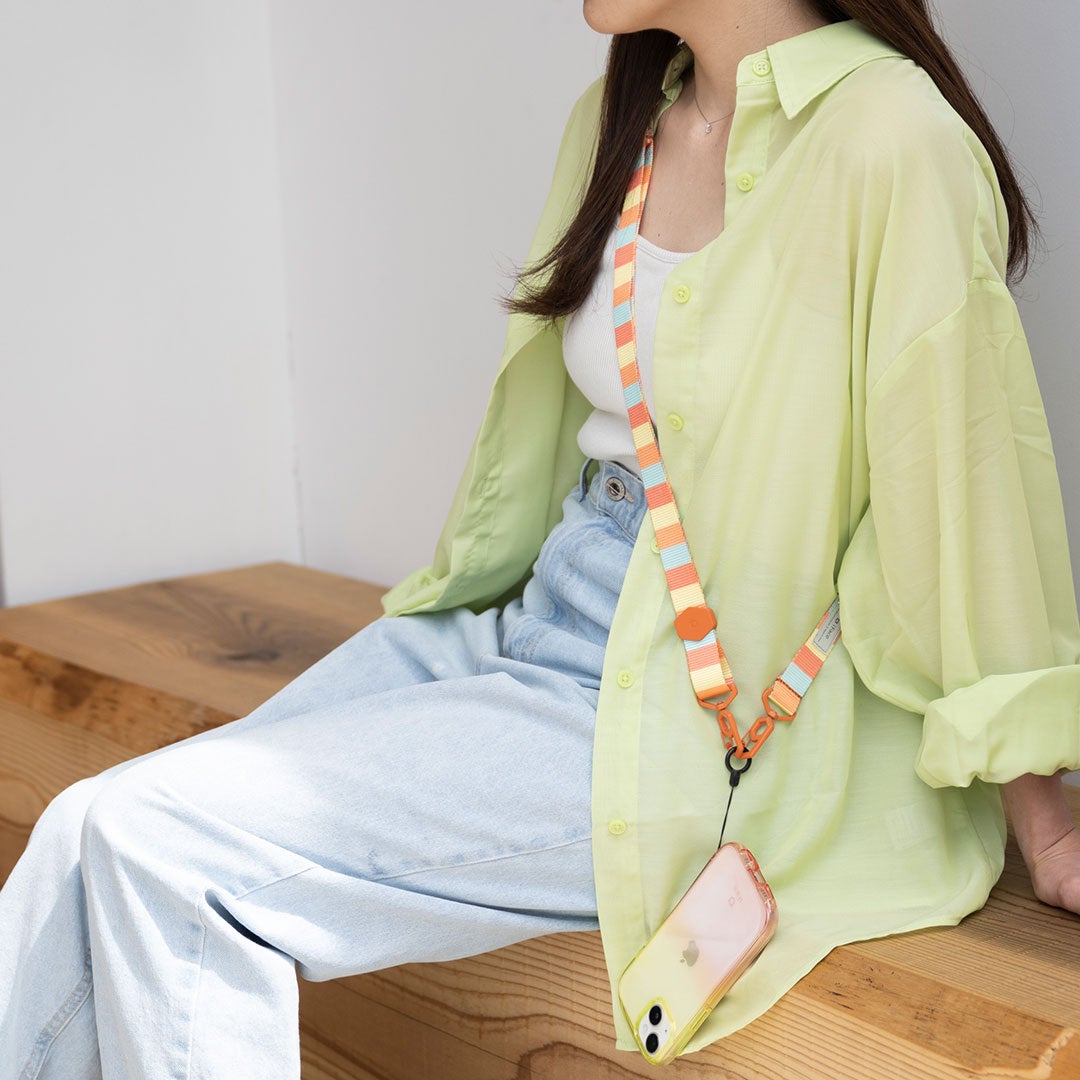 豊富なカラーとデザインで、お洋服のコーディネートに合わせてファッションの一部としてストラップを取り入れることができます。マルチカラーによって個性的でオシャレな雰囲気を演出することができます。