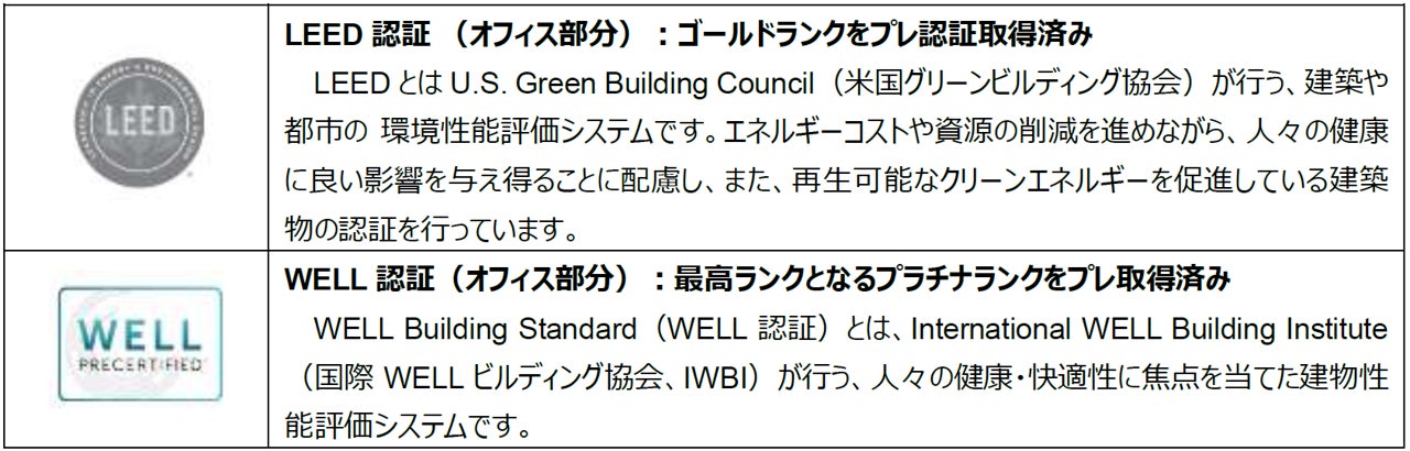 環境認証評価に積極的に取組んでいます。取得予定である主な環境認証を以下に記載します。