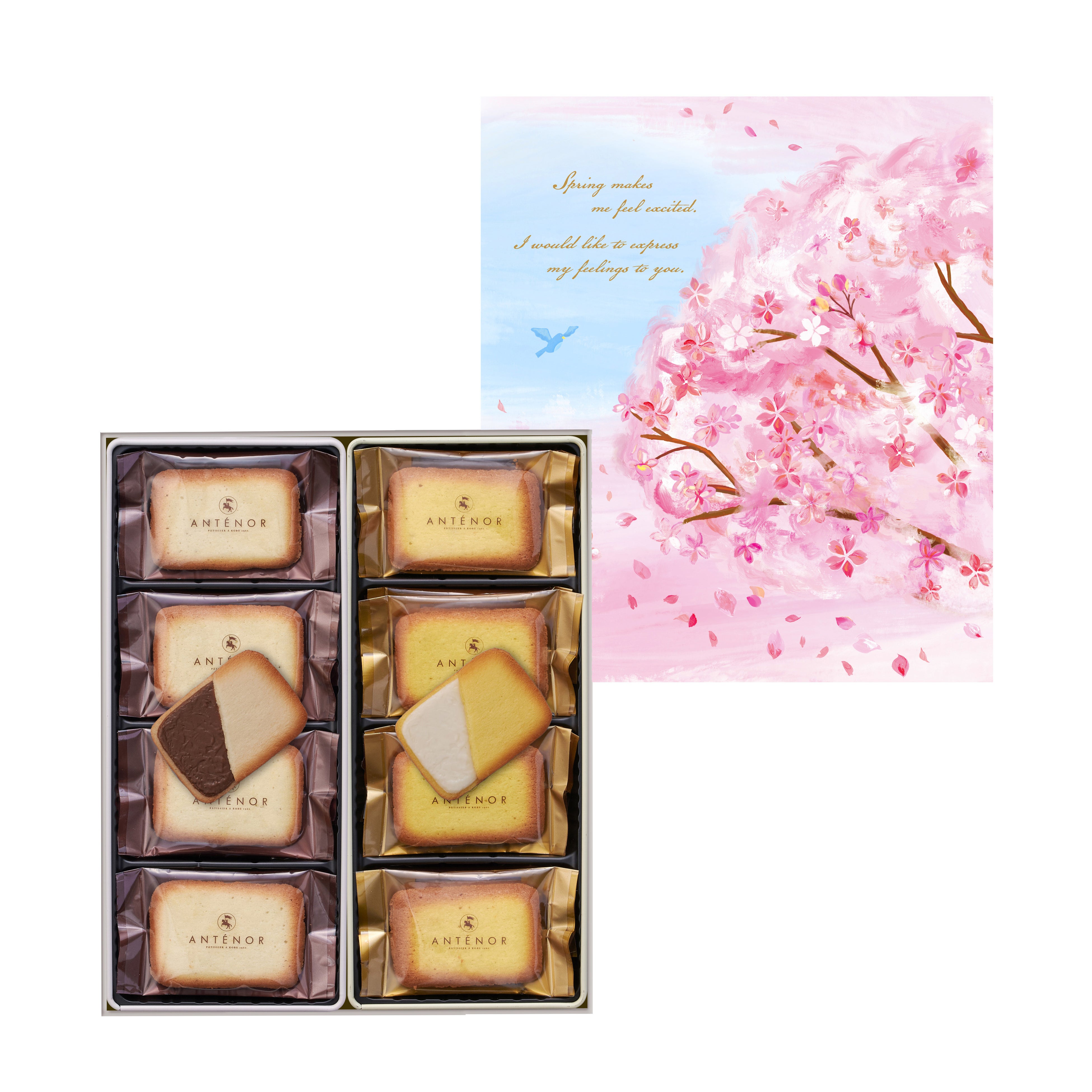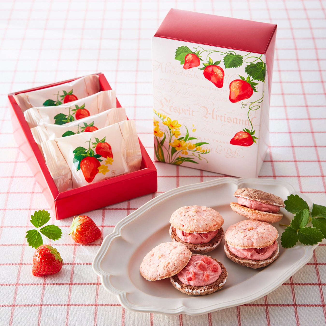 チョコレートサンドの軽やかな食感のラングドシャに期間限定の「苺」フレーバーを加えて。4種類のクッキーを詰め合わせた春だけの限定商品です。