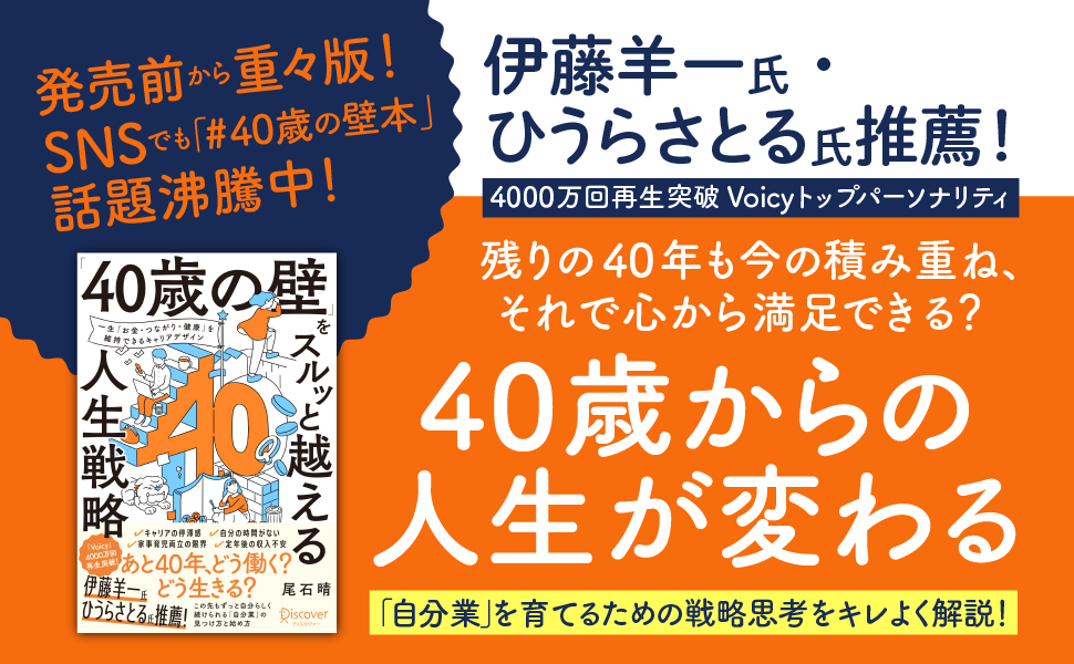 この本は、40歳前後で多くの人が感じるこの「モヤモヤ感」、つまり「40歳の壁」の正体を分解しながら、自分らしく生きるために「人生の後半戦をどうデザインしていくか?」を考えるためのものです。