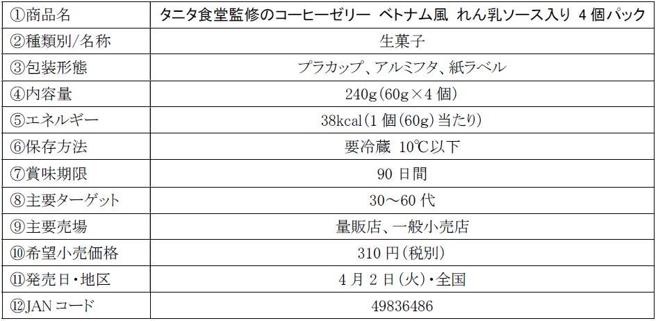 「タニタ食堂監修のコーヒーゼリー ベトナム風 れん乳ソース入り 4個パック」4月2日(火)より全国にて新発売