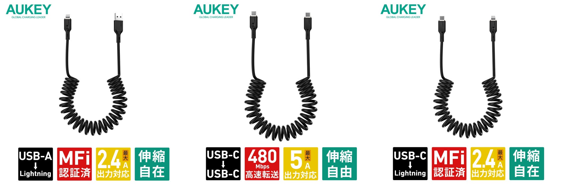 AUKEY発!伸縮可能なコイル型のケーブル!「Coiled Series コイル型USBケーブル (1.5m)」 6月16日(金)に販売開始!