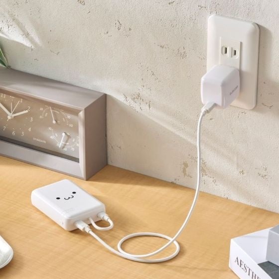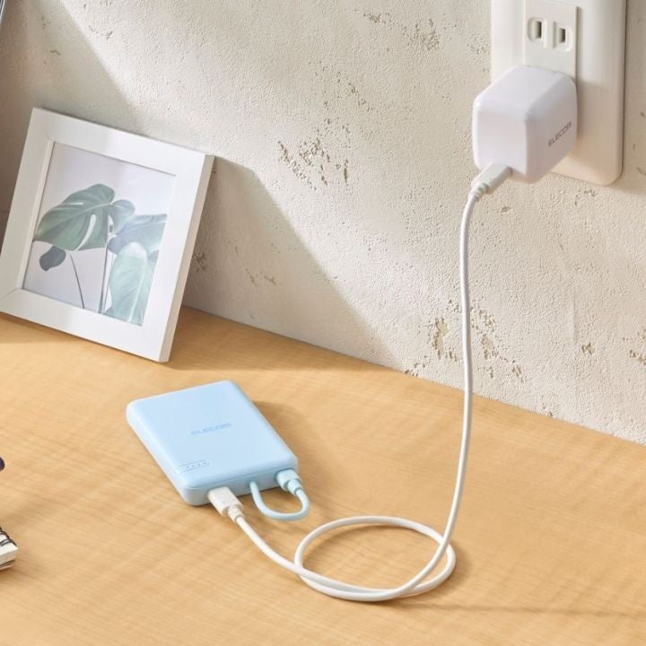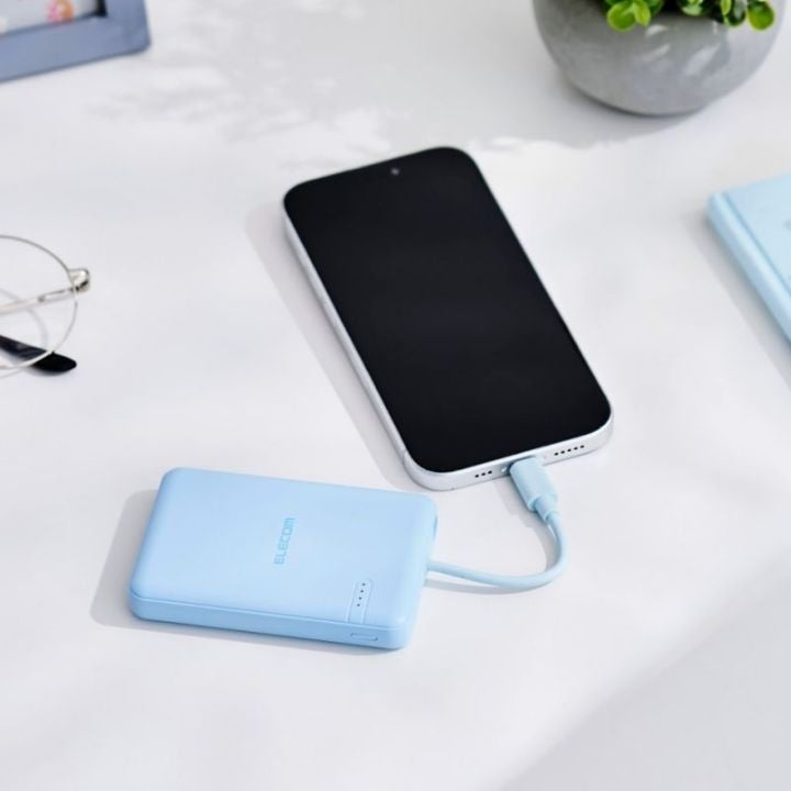 本体付属のケーブルからはもちろん、USB Type-C(TM)(USB-C(TM))ポートに別途ケーブルを接続して2ポート同時充電も可能です。スマートフォンなどのデバイスへの充電と、本製品への充電が同時にできる"まとめて充電"にも対応しています。(※)また、ポーチや小さなバッグにも収まるコンパクトサイズで、お出かけの際など持ち運びにも便利です。