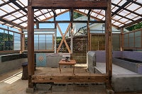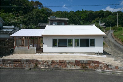 空き家を大月町が借り上げ、耐震断熱改修を施し、移住者向けの公的賃貸住宅として⼀定の期間運営する。設計は全国公募され、県外の建築家として改修された初の物件。木造平屋建ての住戸は移住者がカフェや工房などの商いも行えるように1/3が半屋外の自由な場となっている。