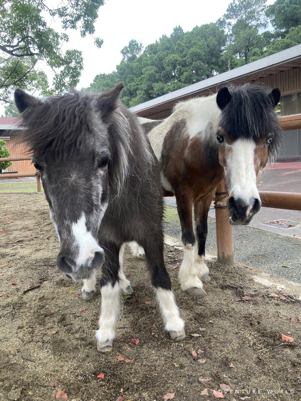 ウマ・ポニー・ミニチュアホースがゲストの皆様をお出迎え!新年フォトプロップスでウマたちとの記念撮影が楽しめます。