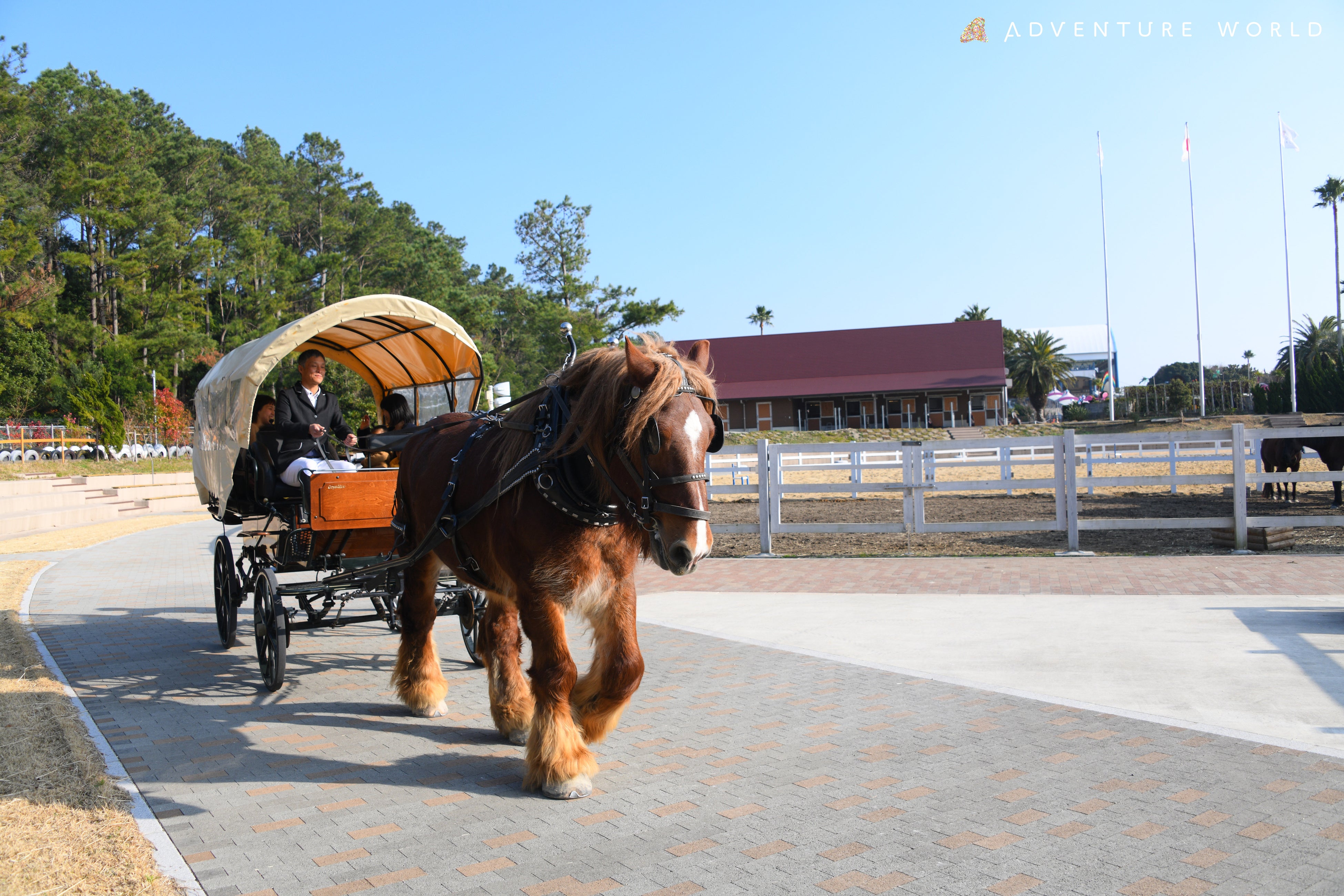 「大きい馬の馬車」「ミニチュアホースのお散歩」のアトラクションに参加すると新年特別パネルと記念撮影ができます。