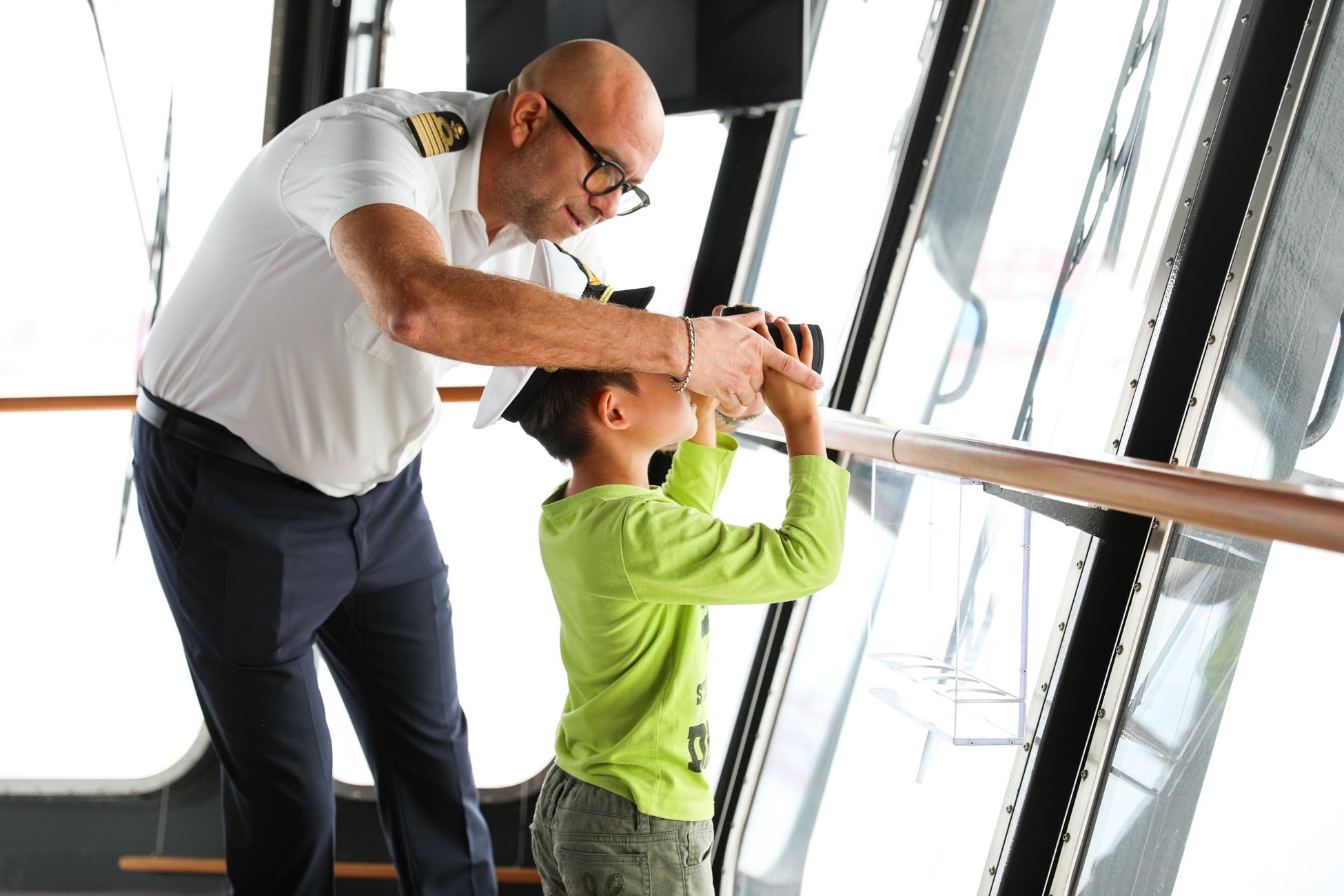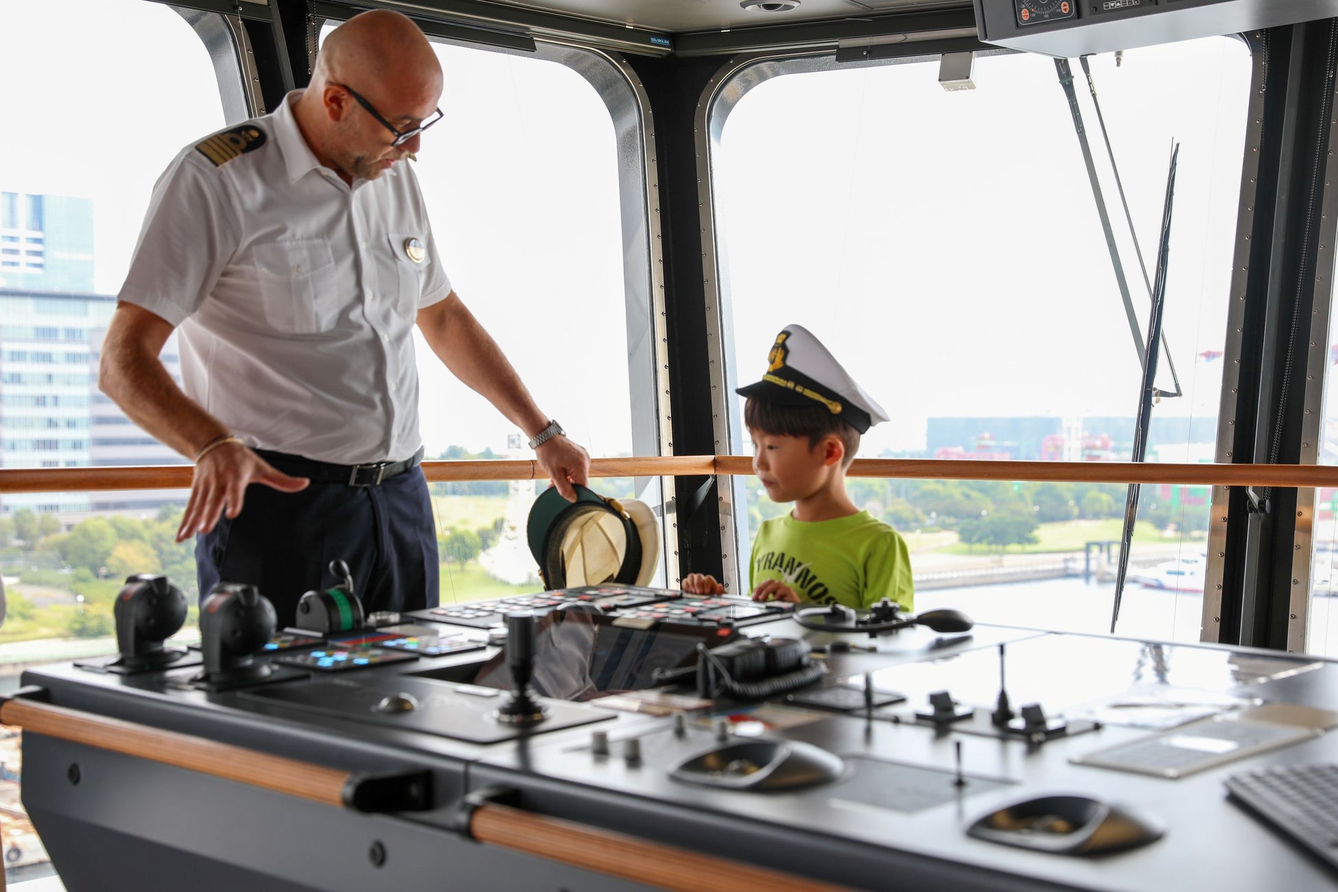 今年の春、家族との国内フェリー旅行で船が大好きになったゆうまくん。「電車は運転席を見られるのに、どうして大きな船は見られないの?」―その純粋な好奇心が、今回の夢の出発点です。「船の“運転席”ではきっと30人くらいの人が働いているに違いない」。そんなゆうまくんの大きな夢と探求心に、MSCクルーズジャパンが「子どもたちの夢を応援したい」という想いで応え、東京国際クルーズターミナルに停泊中の豪華客船「MSCベリッシマ」船内にて、特別な体験が実現しました。