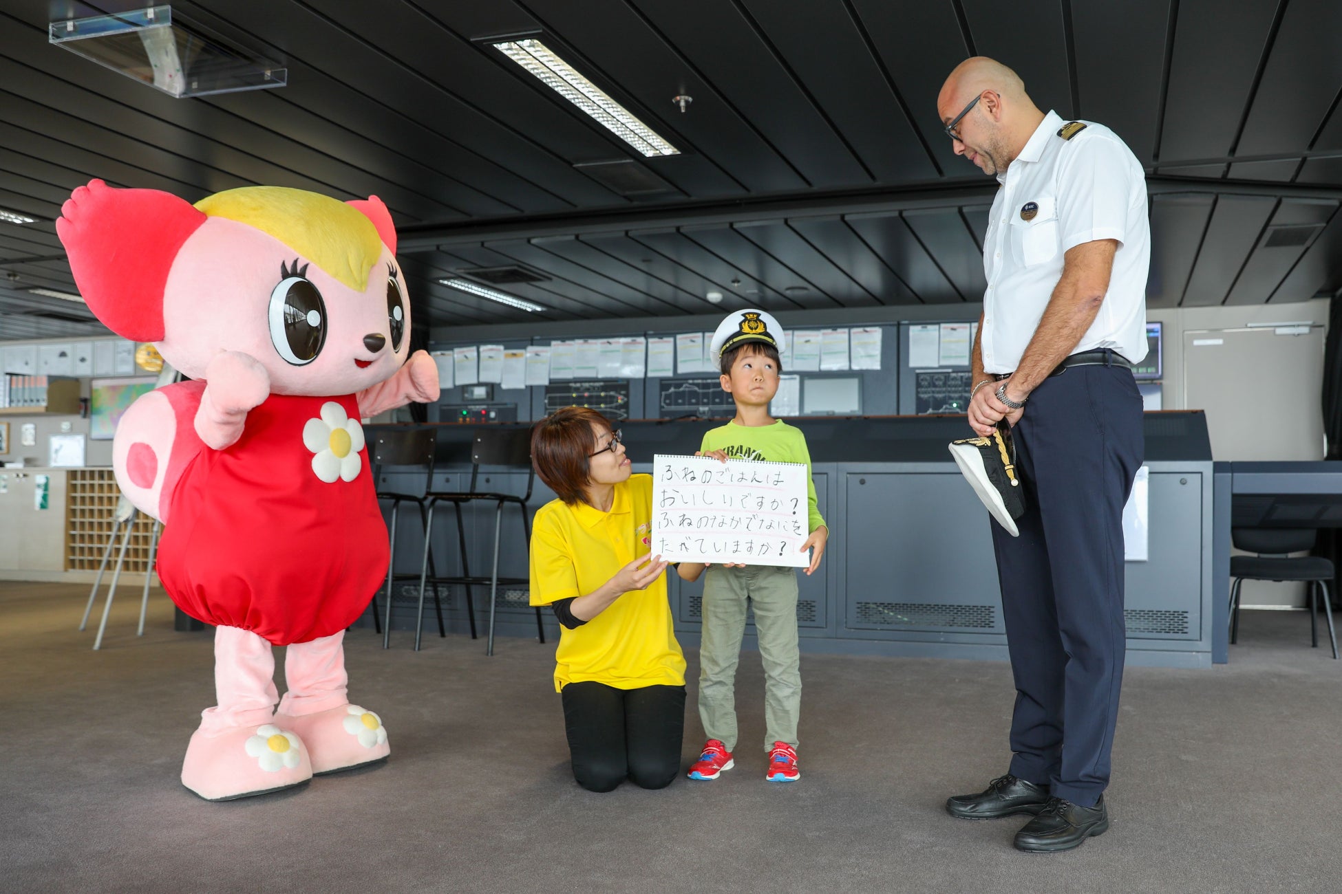 「船の運転は難しいですか?」「船のどのあたりに操縦室はありますか?」といった、ゆうまくんが抱いていた船への素朴な疑問を、本物の船長へ直接質問。船長は一つひとつの質問に優しく答えました。