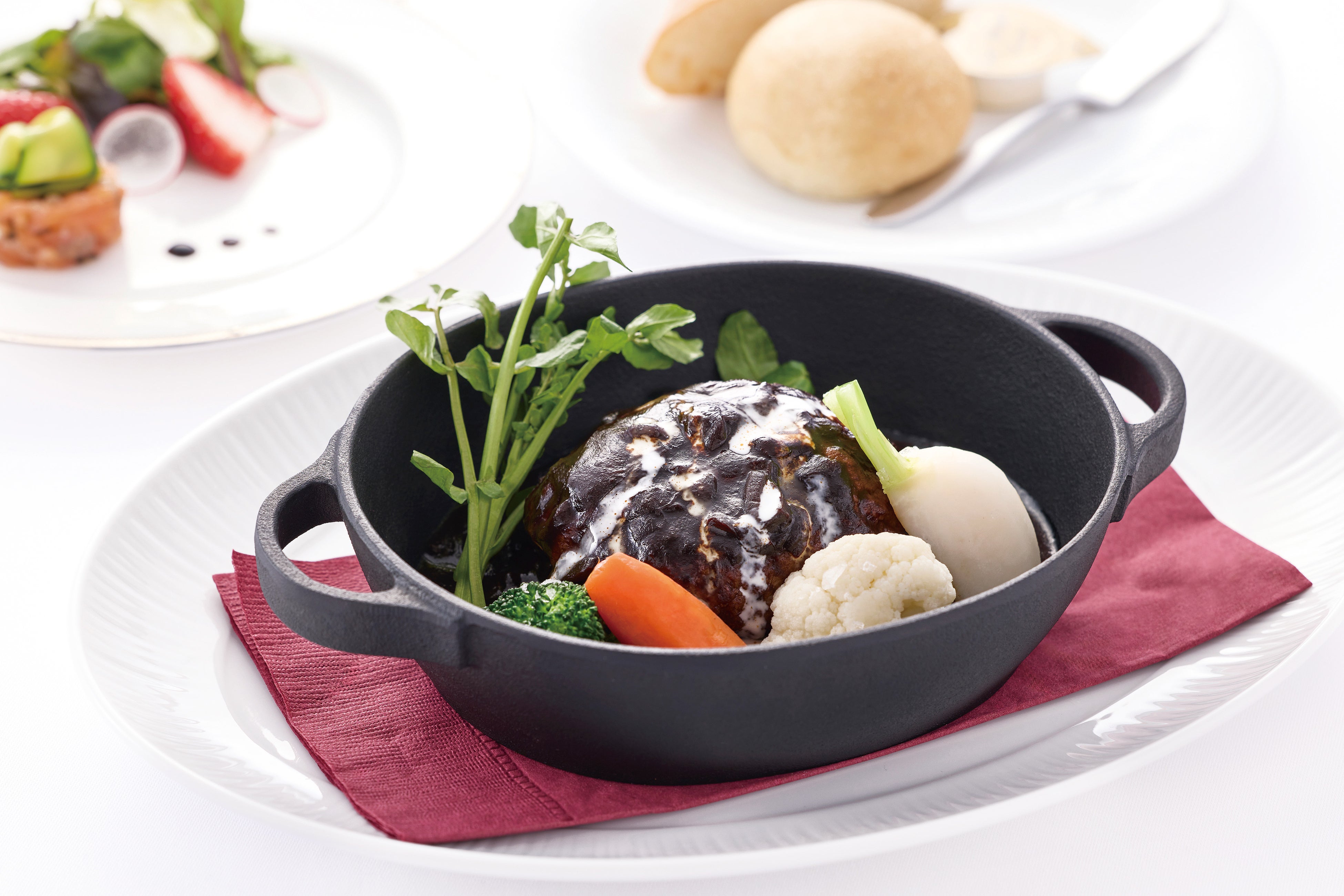 岩手県の肉の専門店「格之進」のジューシーなハンバーグを使用し、旨味たっぷりの濃厚デミグラスソースで奥深い味わいに仕上げた煮込み風ハンバーグです。