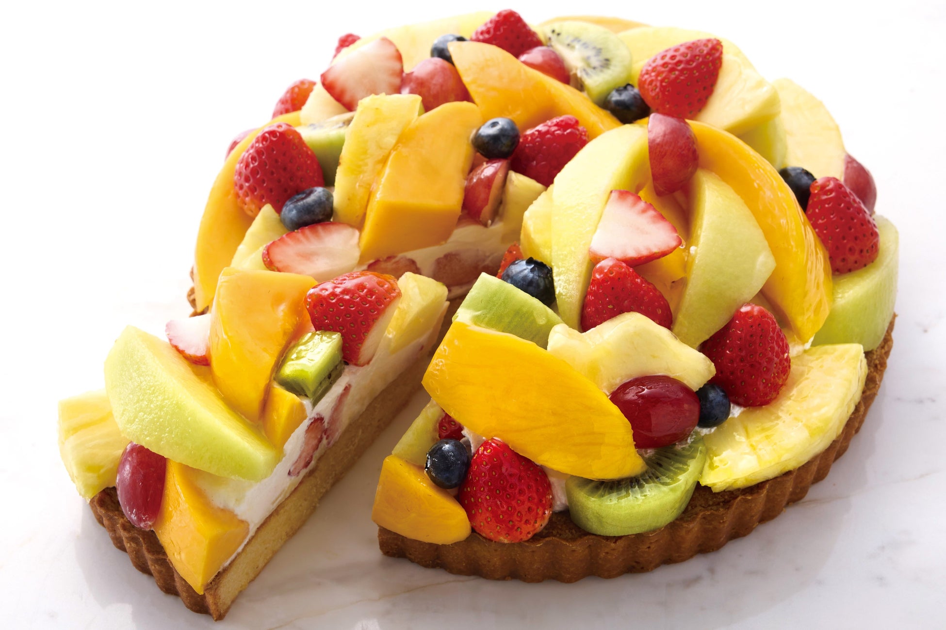 メロン、苺、マンゴーなど、厳選した旬の果実をこぼれんばかりに盛り付けました。果汁滴るみずみずしさと、濃厚なクリームのハーモニーが堪能できる定番タルトです。