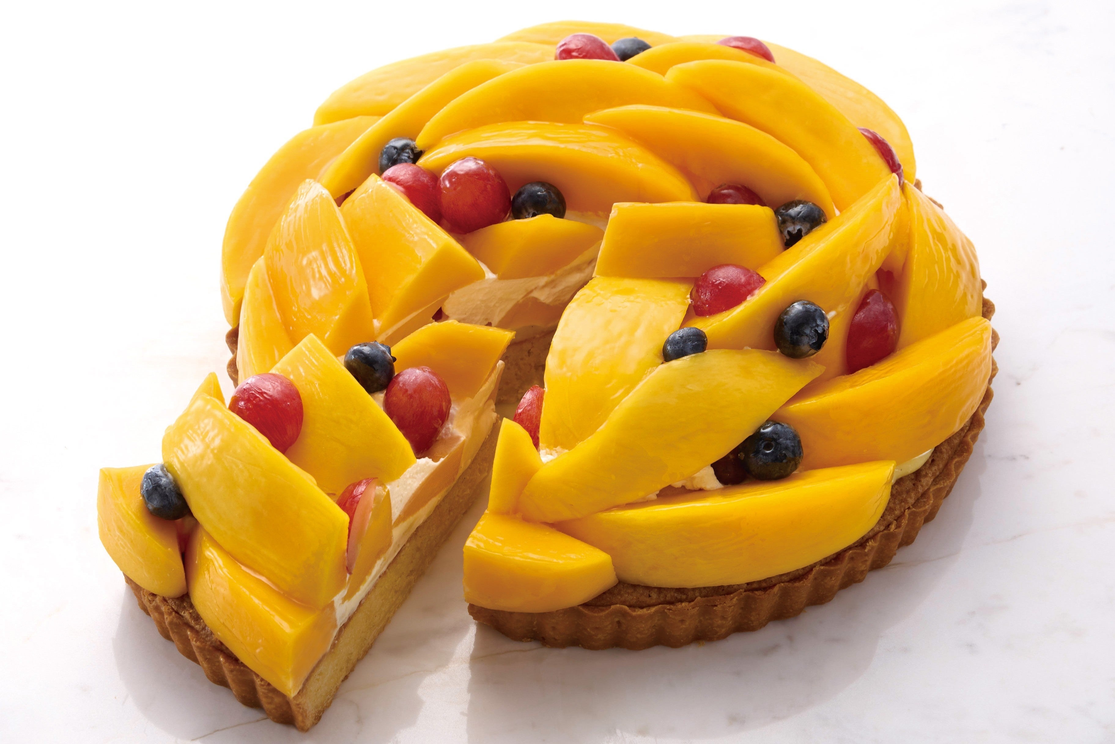 産地を厳選したマンゴーとみずみずしい葡萄を添えた季節感あふれるタルトです。アーモンド香るしっとりとした生地と、とろけるようなマンゴーの甘みが絶妙に調和する、心躍る一品です。