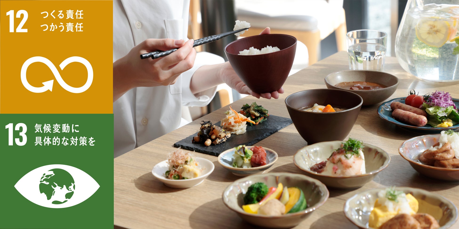 朝食・昼食のブッフェ終了後、本来なら廃棄される予定の料理を規定容器で従業員へ販売し、食材を捨てずに、従業員の福利厚生向上と廃棄削減を両立させました。また提供時間を短時間で設定し、衛生面においても徹底した運用を行いました。