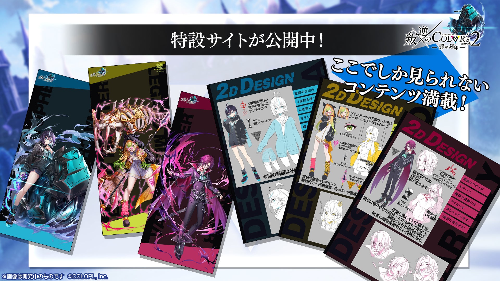さらに現在「叛逆のCOLOR's episode2 ―罪の刻印―」の特設サイトが公開されており、キャラクターのラフイラストや声優さんからのボイスコメントなどをご覧いただくことができます。