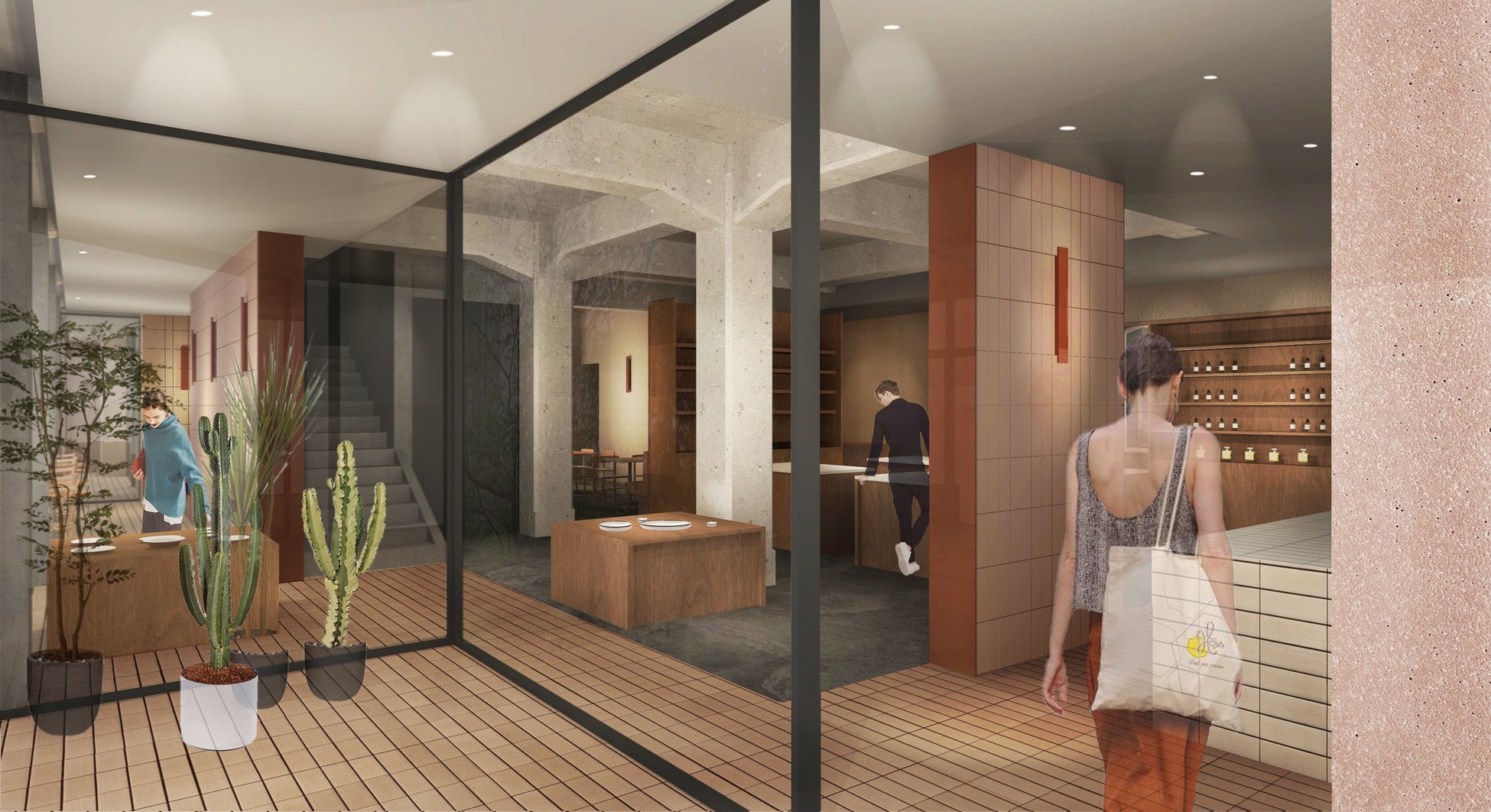 カフェ&レストランとコスメ・生活雑貨を展開するフロアと、アパレル・ポップアップスペースを展開するフロアの2層で構成