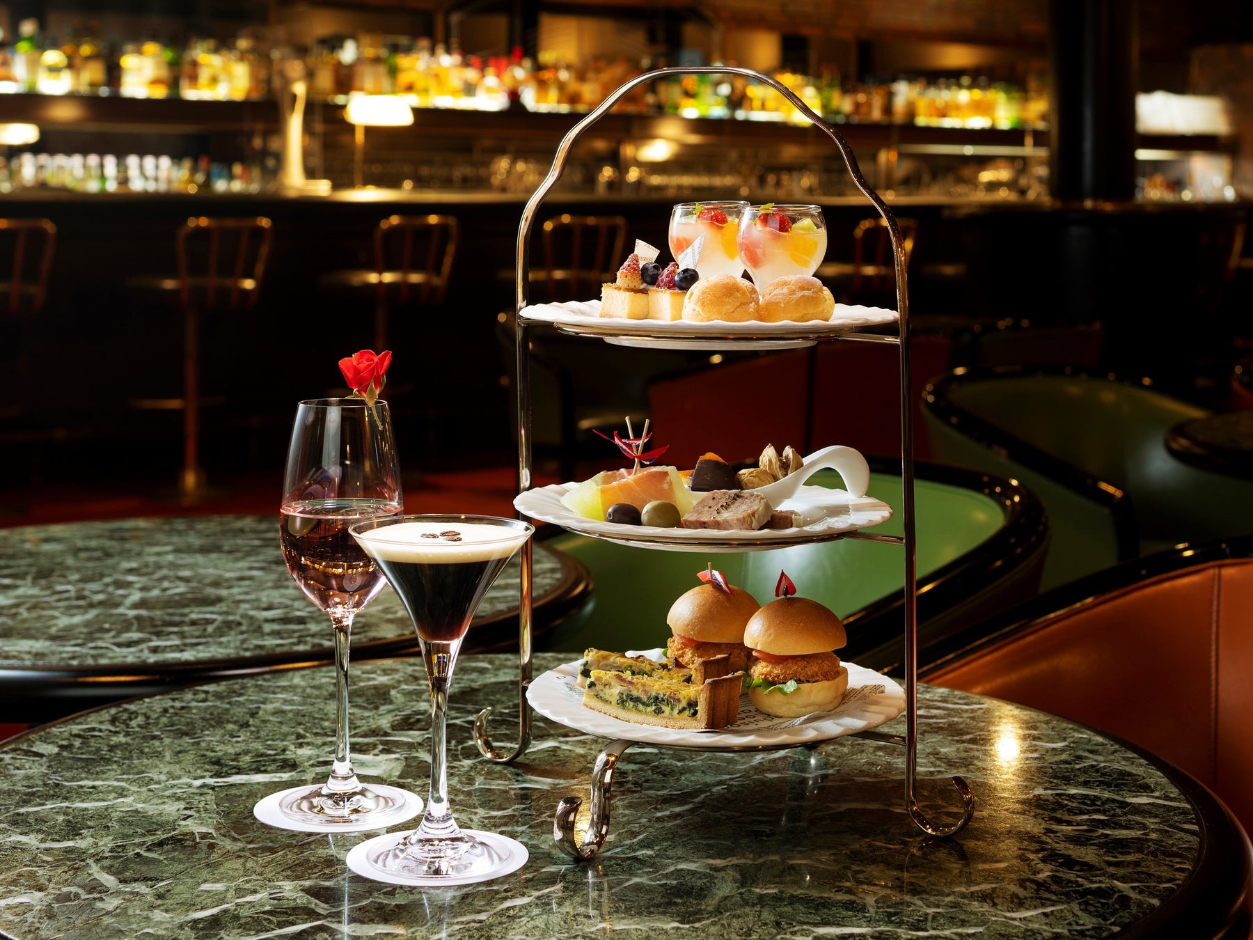 3段のティースタンドにはスイーツやセイボリーをのせ、バーテンダーが作るノンアルコールのカクテル 「モクテル」 もフリーフローでお愉しみいただけます。お酒が苦手な方にもホテルのバーの雰囲気をお愉しみいただける新プランです。