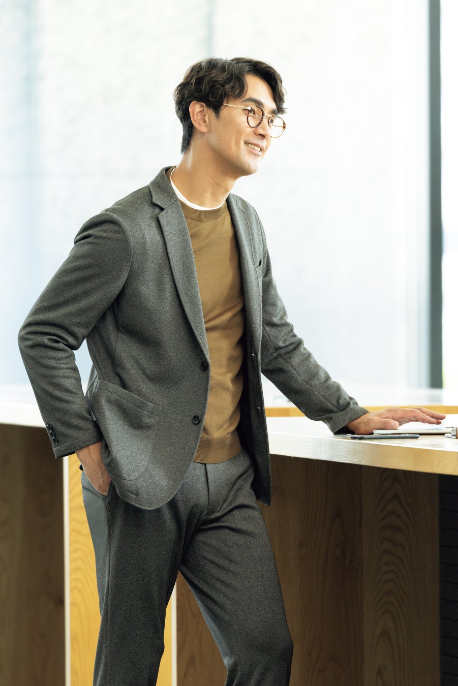 ~上品なホームスパン調生地でソフトな風合いと高ストレッチで快適な着用感を実現~