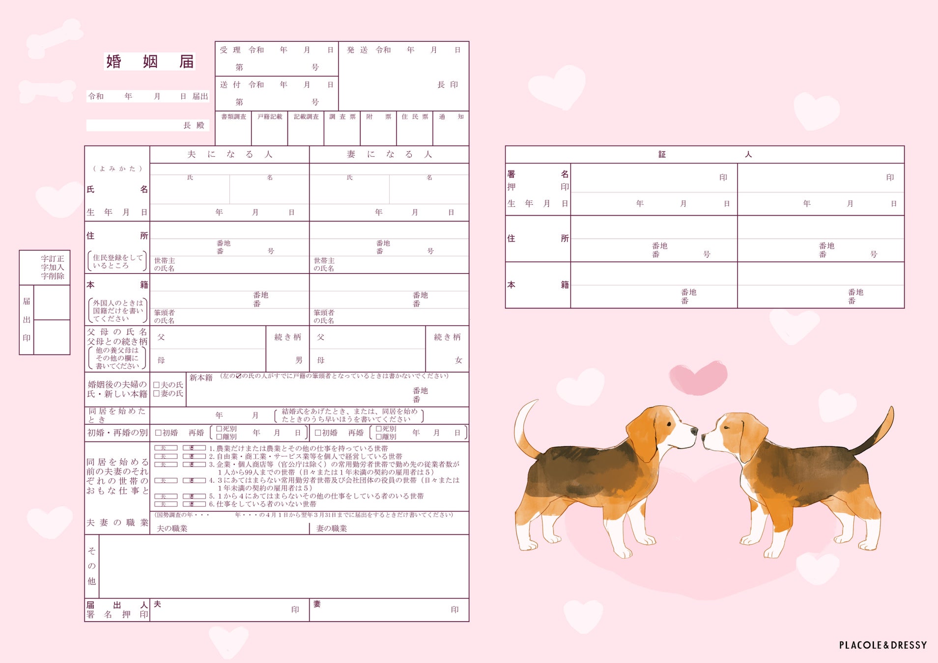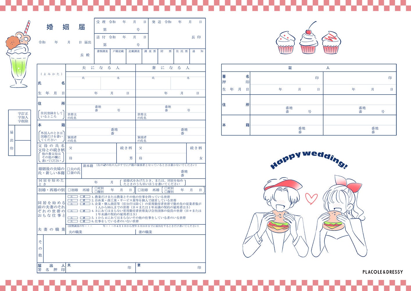 「PLACOLE & DRESSY」ブランドを展開する冒険社プラコレ(本社:神奈川県鎌倉市、代表取締役CEO:武藤功樹)は、全4種の婚姻届を2026年4月分として制作・公開いたしました。