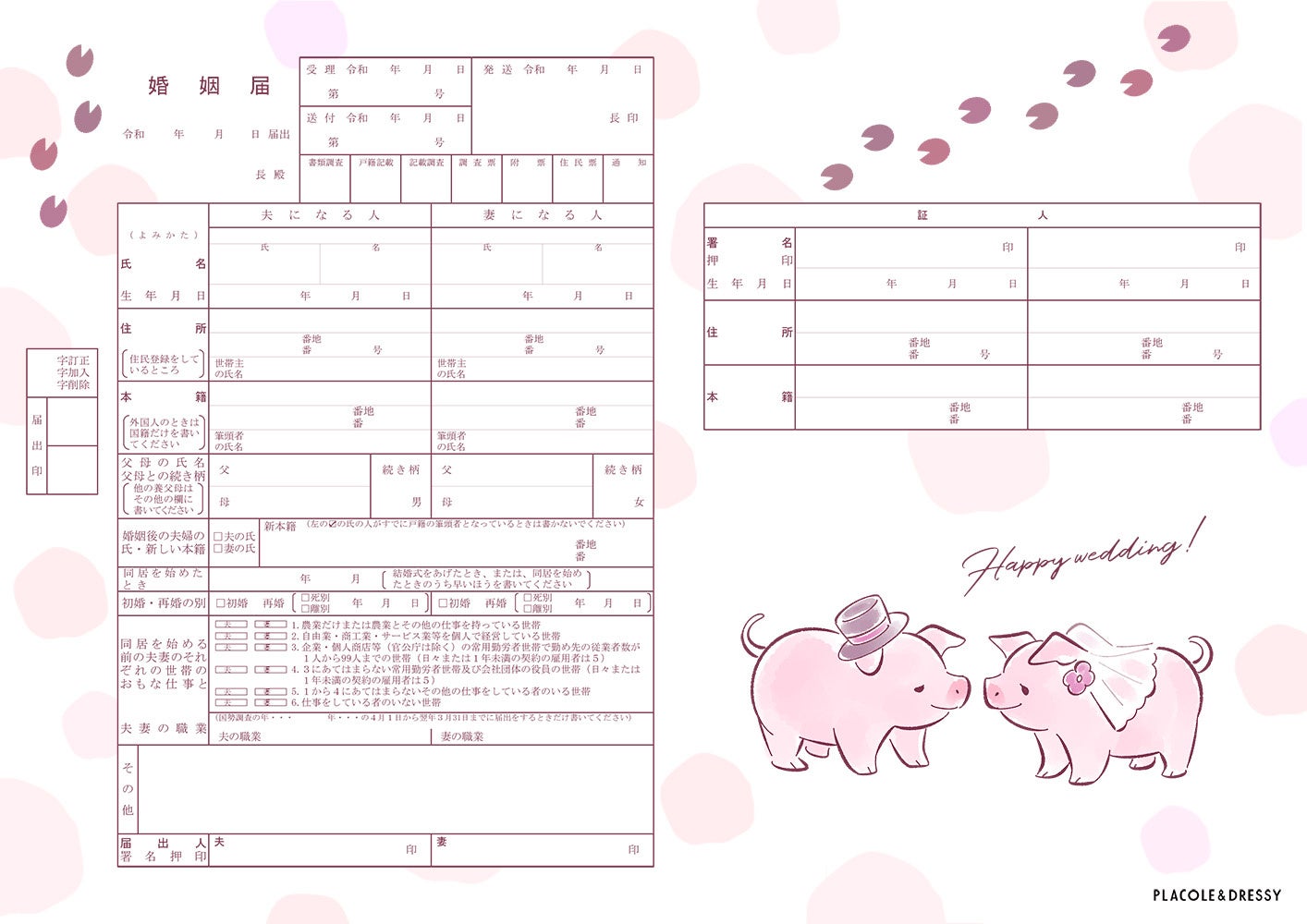 【ダウンロード無料】PLACOLE&DRESSYオリジナル 『プラコレ婚姻届』に4月の新デザインが4種登場!