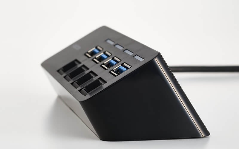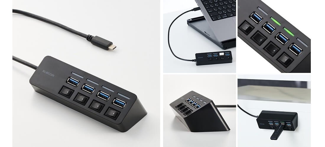 USB 5Gbps(USB3.2(Gen1))に対応し、高速でデータ転送が可能なUSB-A×4ポートハブです。ポートごとに個別スイッチとLEDランプを搭載し、使用しないポートの電源をオフにして無駄な電力消費を抑えられるほか、電源のON/OFF状態がひと目で確認できます。