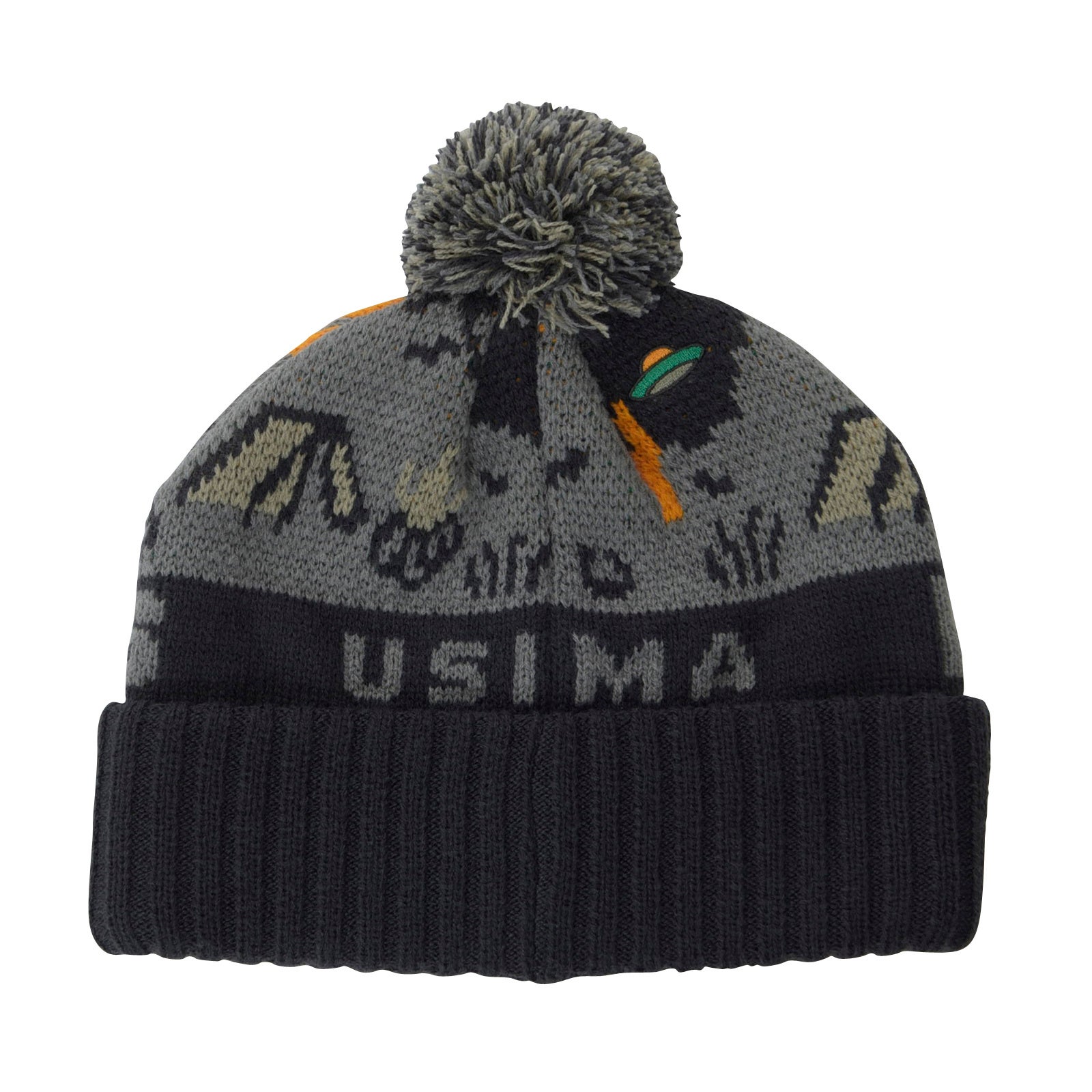 太番手のバルキーアクリルをミドルゲージで編み上げたジャカードニットを採用。アメリカンクラシックなアクリルビーニーを現代的にアップデートしました。荒野の惑星に張られたテントと飛来するUFOをハンドレタリングタイポグラフィとグラフィックで表現。MT1996独自のオフセットしたゆるい世界観と、ざっくり編んだ風合いが絶妙にマッチするヴィンテージ感あふれるアイテムです。二重構造で保温性にも優れています。