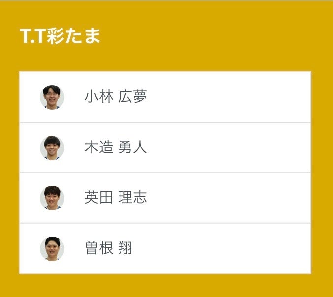 ノジマTリーグ 2023-2024シーズン 公式戦 10月21日開催の「T.T彩たま vs 静岡ジェード」のベンチ入り選手を発表いたします。