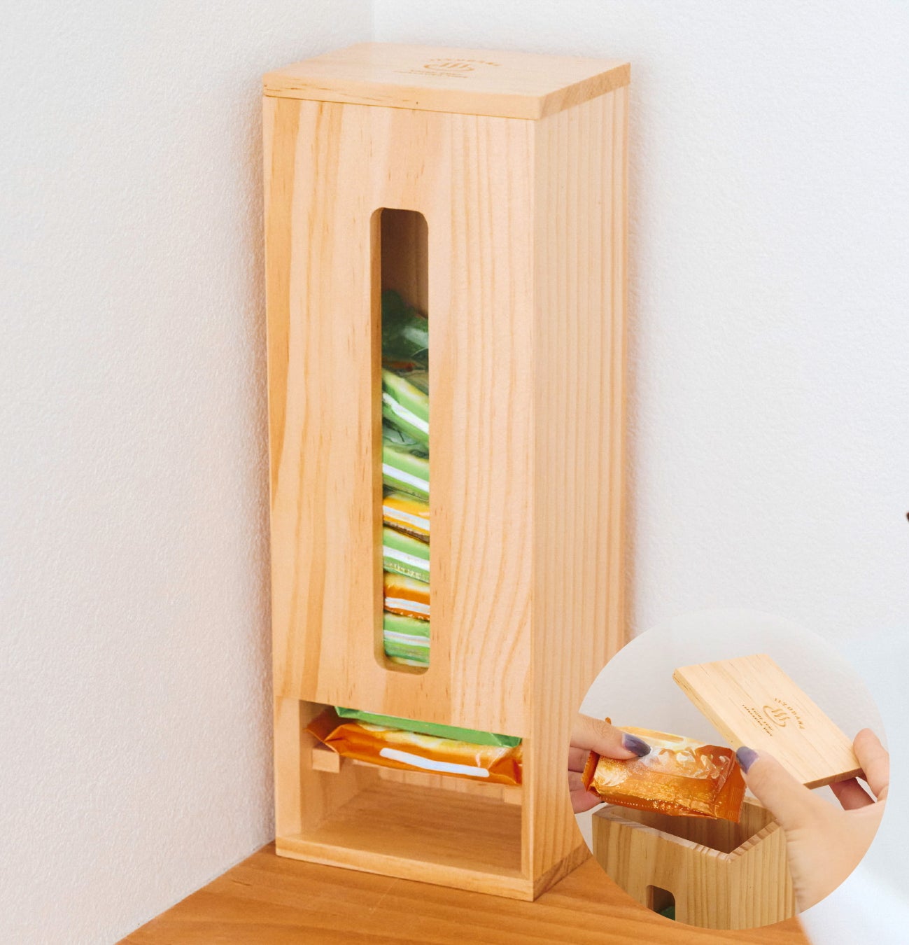 ストックの残量が確認できるデザインで、下から取り出すことができます。