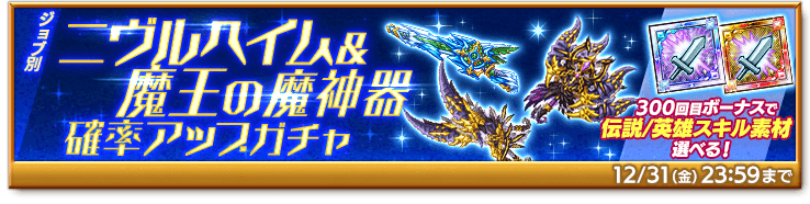 期間中、「ジョブ別 ニヴルヘイム&魔王の魔神器確率アップガチャ」を販売します。