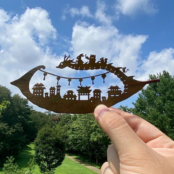 SNSに毎日のように投稿する葉っぱ切り絵が注目を集める。その作品は、テレビや新聞、雑誌など