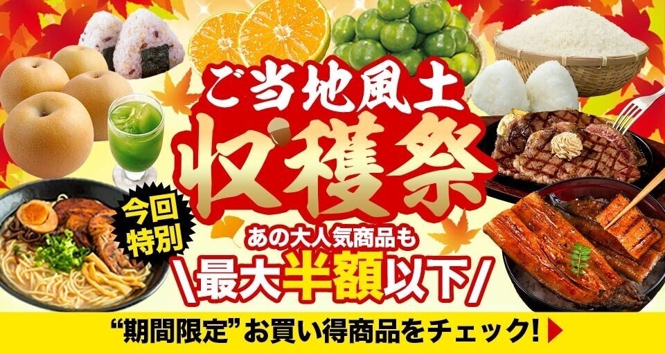 「ご当地風土」において、国産牛や新米、みかんなどの超目玉商品を特別価格でお買い求めいただける「ご当地風土の収穫祭」を開催します。さらに、auスマートパスプレミアム会員なら割引クーポンの配布などおトクな特典を提供します。