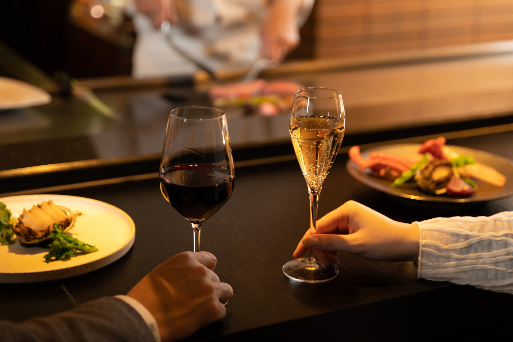 スパークリングワインや赤・白ワイン、プレミアムビールなど、フリーフローとともに贅沢な一皿一皿をゆったり堪能。
