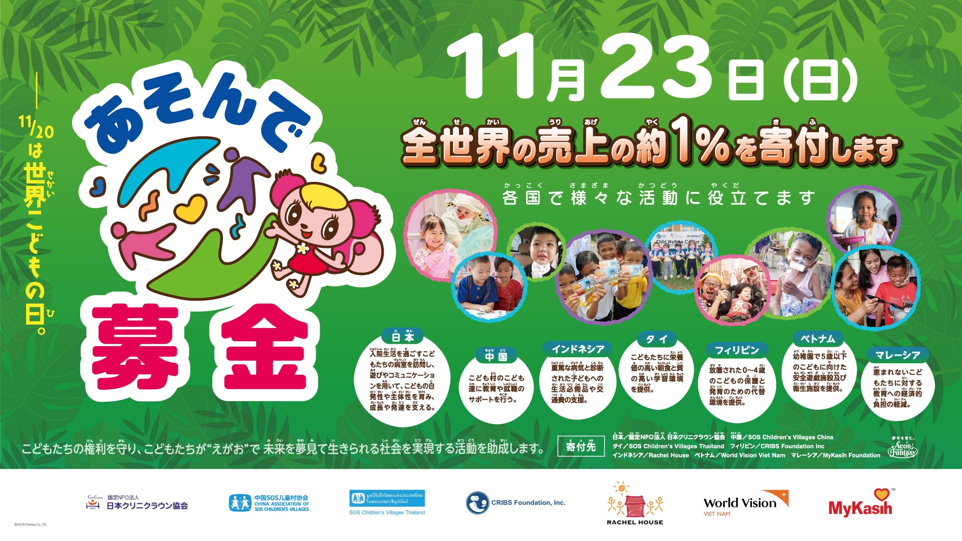 「あそんで募金」で集まった寄付金は、「認定NPO法人日本クリニクラウン協会」をはじめ、当社が事業を展開する世界7カ国のこども支援活動を行うNPO、財団法人の活動に寄付いたします。
