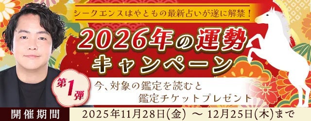 株式会社レンサ(本社:東京都渋谷区、代表取締役:武井哲也)は、2026年11月28日(金)より、運営する公式占いサイト『シークエンスはやともの占い』にて、「2026年の運勢キャンペーン第一弾」の提供を開始いたしました。