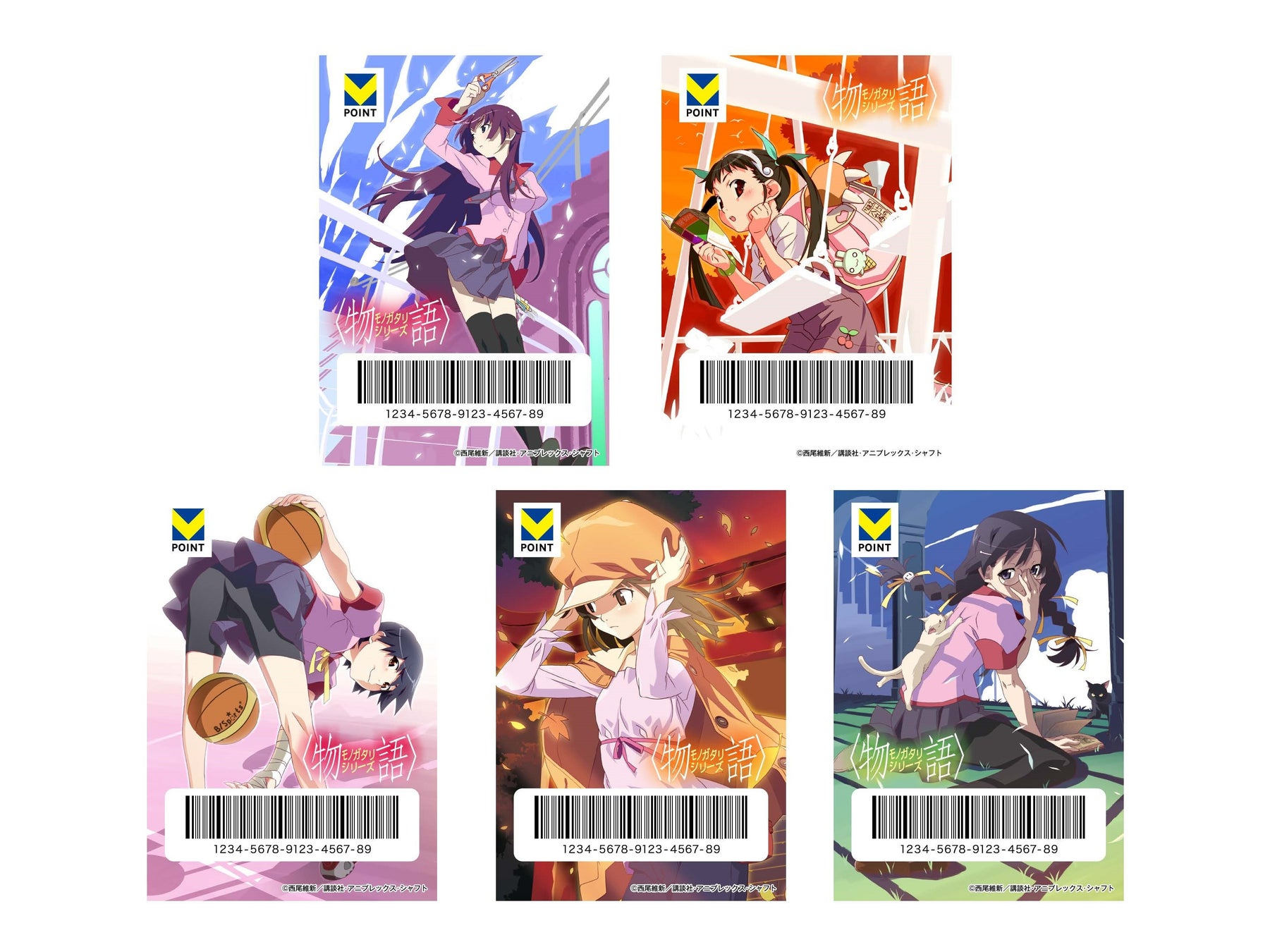 CCCMKホールディングス株式会社(本社:東京都渋谷区、代表取締役社長兼CEO:髙橋誉則)は、Vポイントアプリの「モバイルVカード」を好きなデザインに着せかえできる「Vキセカエ」(https://ip.tsite.jp/guide)において、2024年にアニメ15周年を迎えた『物語シリーズ』より、アニメ第一作目「化物語」に登場する5人を一人ひとりキービジュアルに使用したデザイン全5種を、2025年2月19日(水)から2026年2月18日(水)まで期間限定で販売いたします。