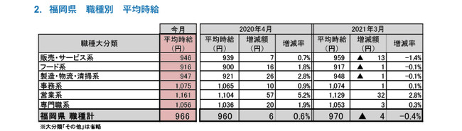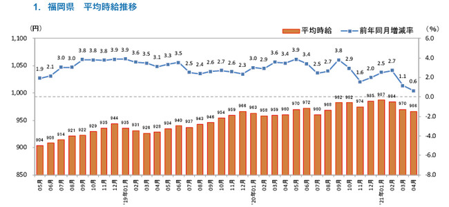 ■福岡県の平均時給は966円 (前年同月960円、前月970円)