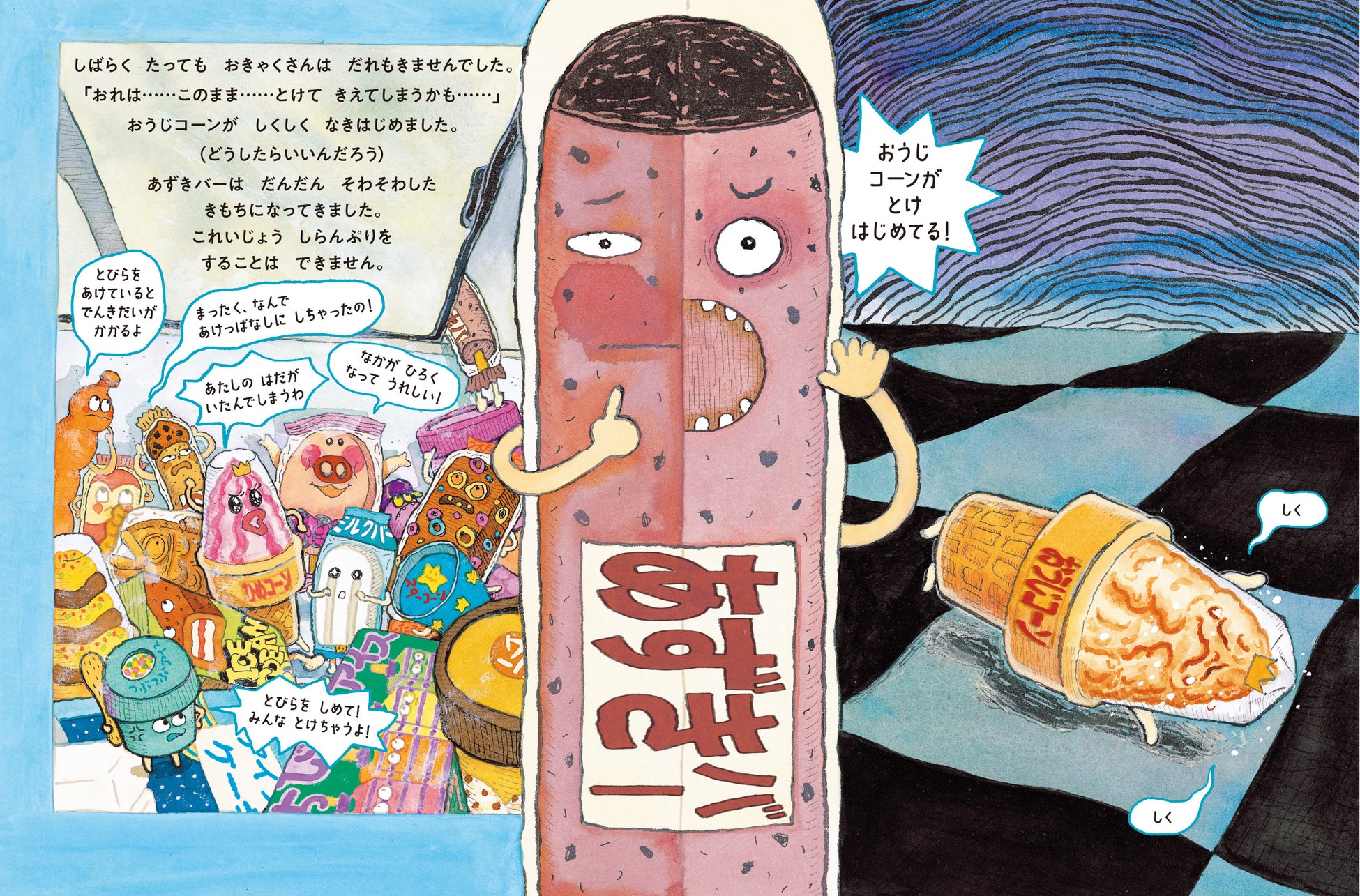 アイスクリームを入れた冷蔵庫のドアを開けたまま寝てしまったお父さん。溶けはじめたアイスを守ろうと、食べ物たちが大奮闘!やがて冷蔵庫の中で大騒ぎが始まって……。韓国で累計20万部突破の大人気シリーズ、邦訳第1弾。