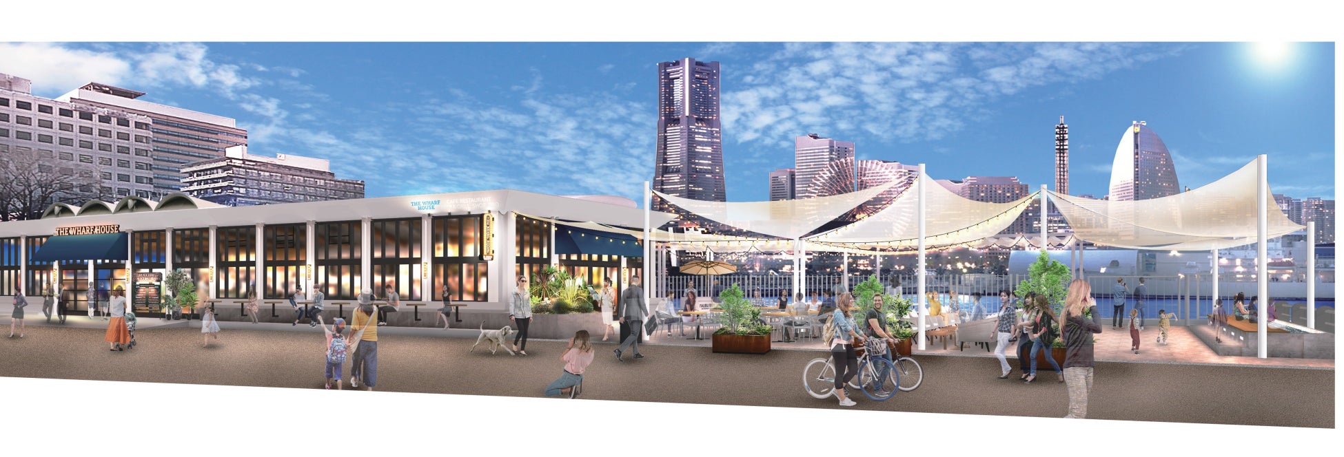 施設名の「波止場(=Wharf )」には、山下公園レストハウスが、みなとみらいエリアと元町中華街エリアとの間を行き交う 大勢の人々を受け止める場所として 、周辺エリアと一体的な魅力を発信していきたいという想いが込められています。