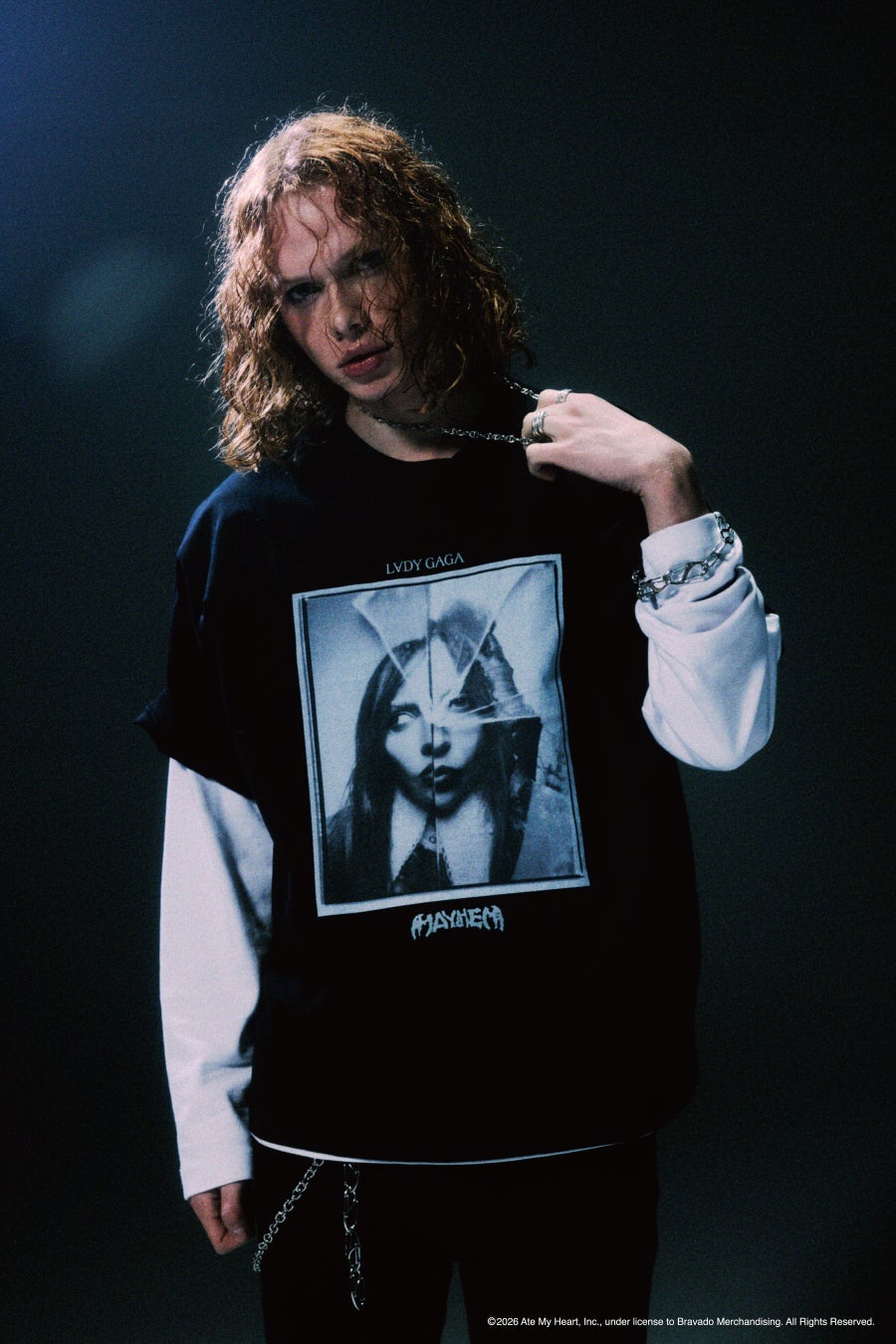 LADY GAGAのアイコニックなビジュアルを落とし込み、素材・加工・プリント技法にはAZUL BY MOUSSYオリジナルを採用しました。さらに、今回のツアー「MAYHEM」と「AZUL BY MOUSSY」のWネームタグを装着した、ここでしか手に入らない特別なアイテムを展開いたします。