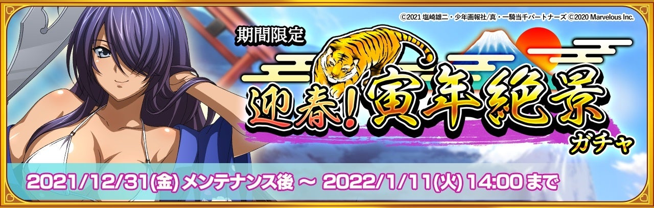 株式会社マーベラス(代表取締役社長 許田周一/所在地:東京都品川区)は、原作が20周年を迎えた人気シリーズ「一騎当千」のAndroid/iOS向けゲームアプリ『一騎当千エクストラバースト』で、2021年12月31日(金)より、新年イベント「雲竜風虎!初日の出への道」を開始したことをお知らせいたします。