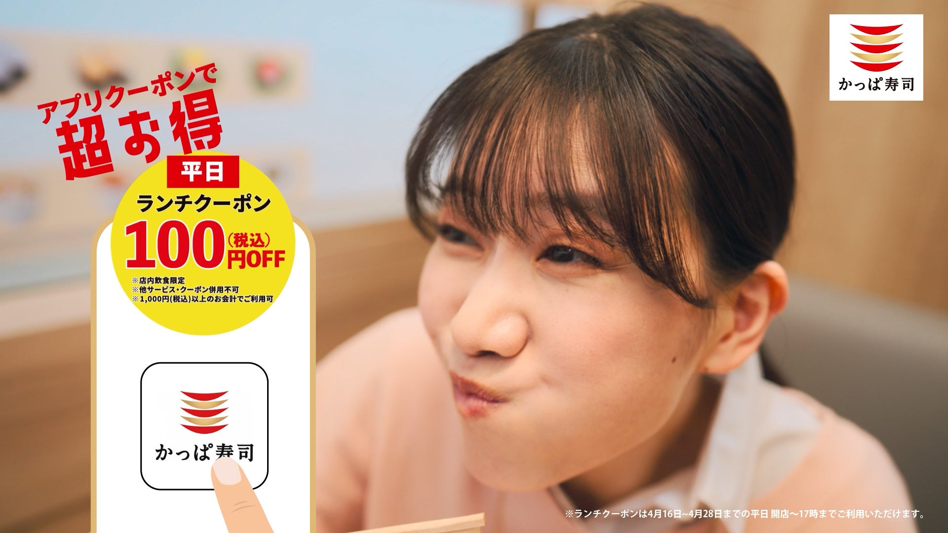 2026年4月16日(木)~5月6日(水)予定、かっぱ寿司全店にて さらに!かっぱ寿司 アプリ会員様限定で平日はもっとお得に!4月28日(火)まで平日限定ランチクーポン100円OFFも配信中!