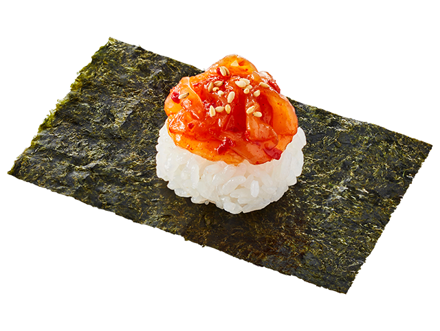 コリコリした食感のほたてひもチャンジャ風をシャリと合わせ、海苔で包んでお召し上がりいただきます。