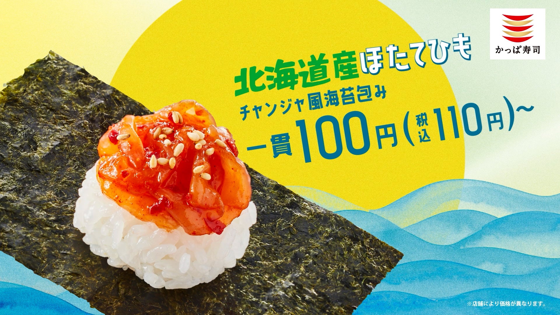 『北海道産ほたて』や『蟹いくら包み』、『北海道産北釧(ほくせん)〆いわし』など北の味覚が税込110円~!人気声優・下野紘さんが歌う新CMソングも!なまらうまい!「かっぱの北海道祭り」開催!