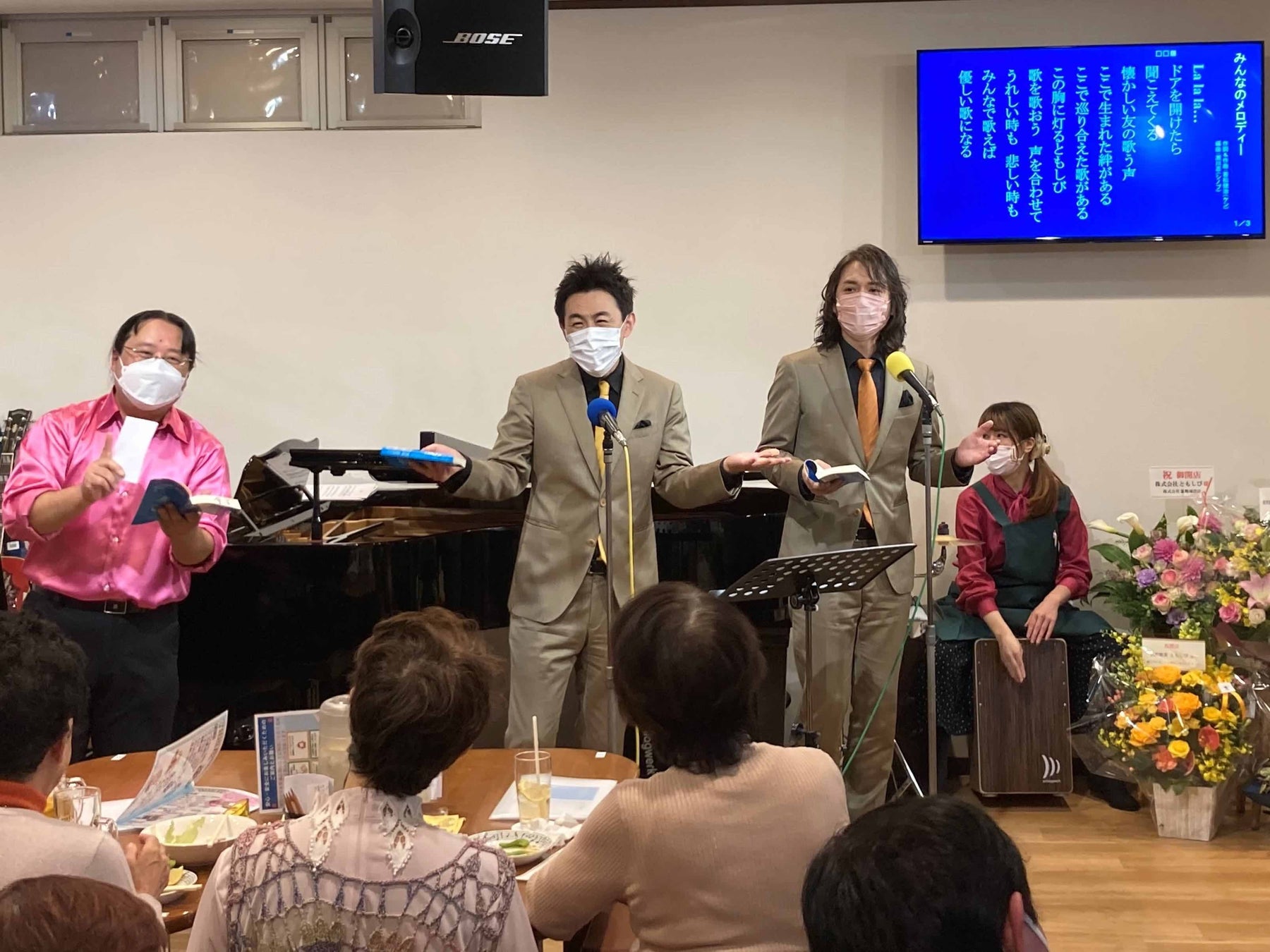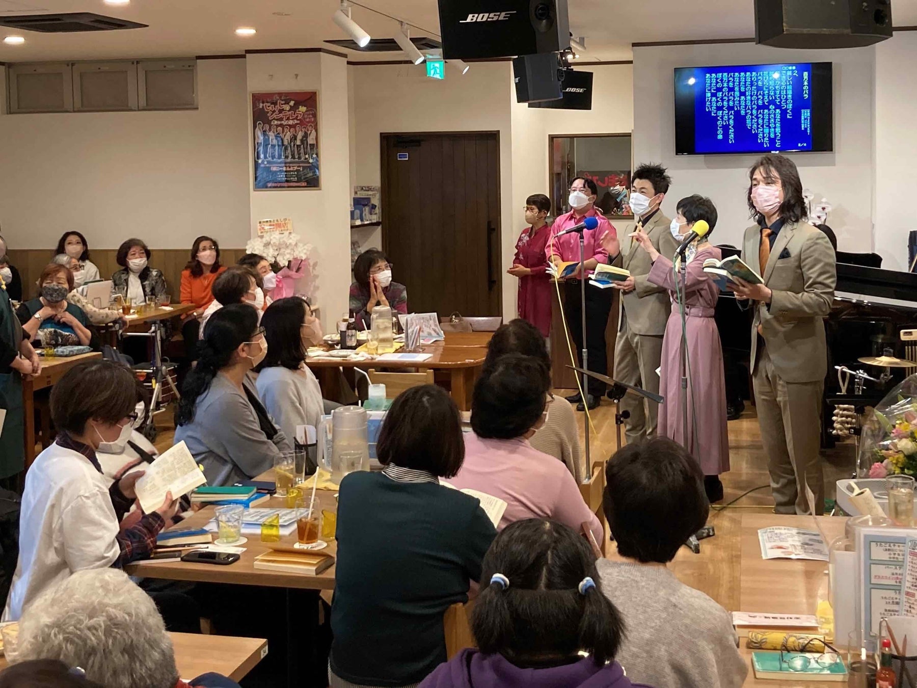 コーラスグループのベイビーブーが「歌声喫茶ともしび」の再出発を祝福